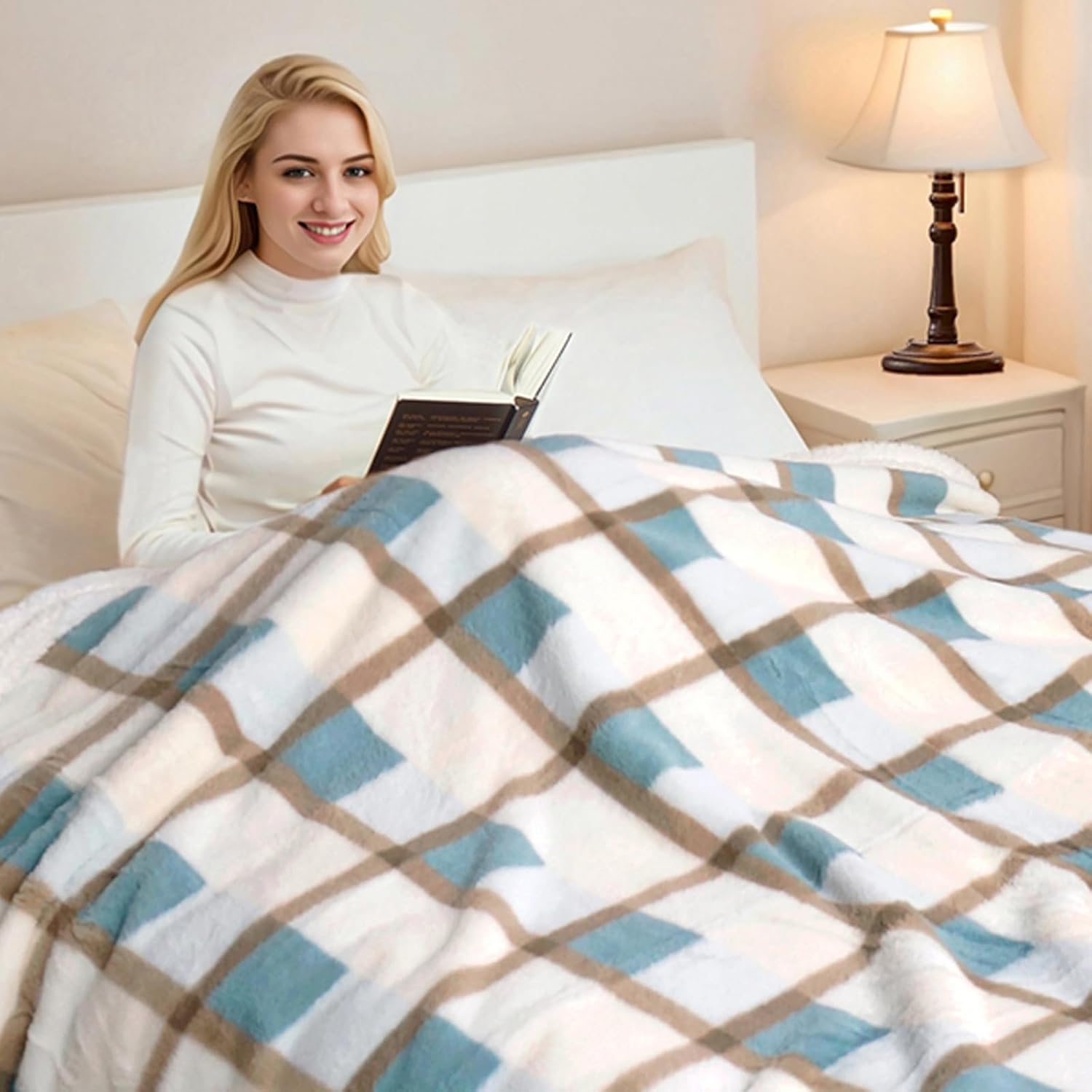 - 【Ultra Soft & Cozy Faux Rabbit Fur Blanket】: Double fabric give you double warmth, Especially on cold winter nights, one side is 300GSM soft faux rabbit fur fabric, and the other is 230GSM high premium sherpa fleece. Its fluffy and ultra-cozy softness offers the utmost comfort all year round. It has just the right weight to keep you warm and cozy, yet it’s light enough so you stay comfortable.