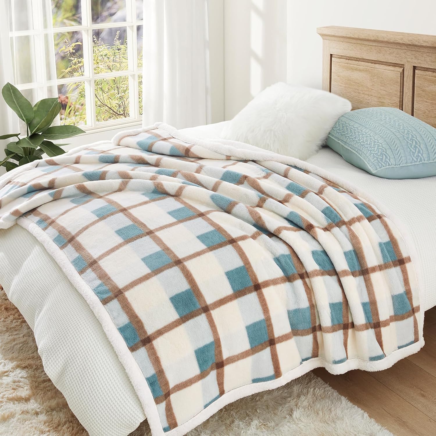- 【Thick Warm & Enhanced Durability】: PU MEI cozy Faux Rabbit Fur blanket maintains the ideal balance between weight and warmth. This cute plush Plaid blanket features a neat stitching construction for a stronger connection at the seams, the stitches are smooth and not easy to broken, not easy to shrink, harden or shed after washing.