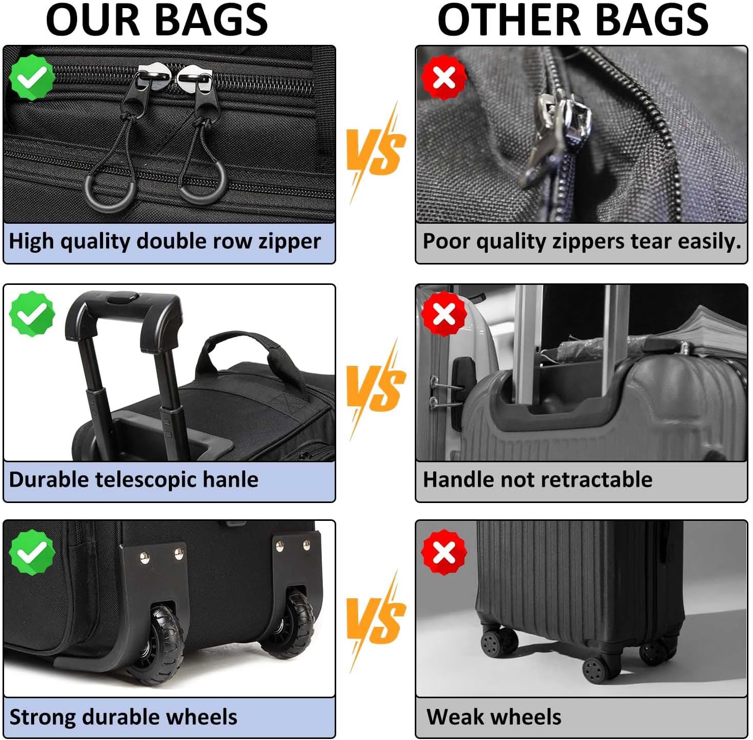 Bowling Bag with Wheels Double Roller 2 Ball Bowling Separate Shoe Compartment and Oversized Accessory Pocket, 36.6" Extendable Handle.