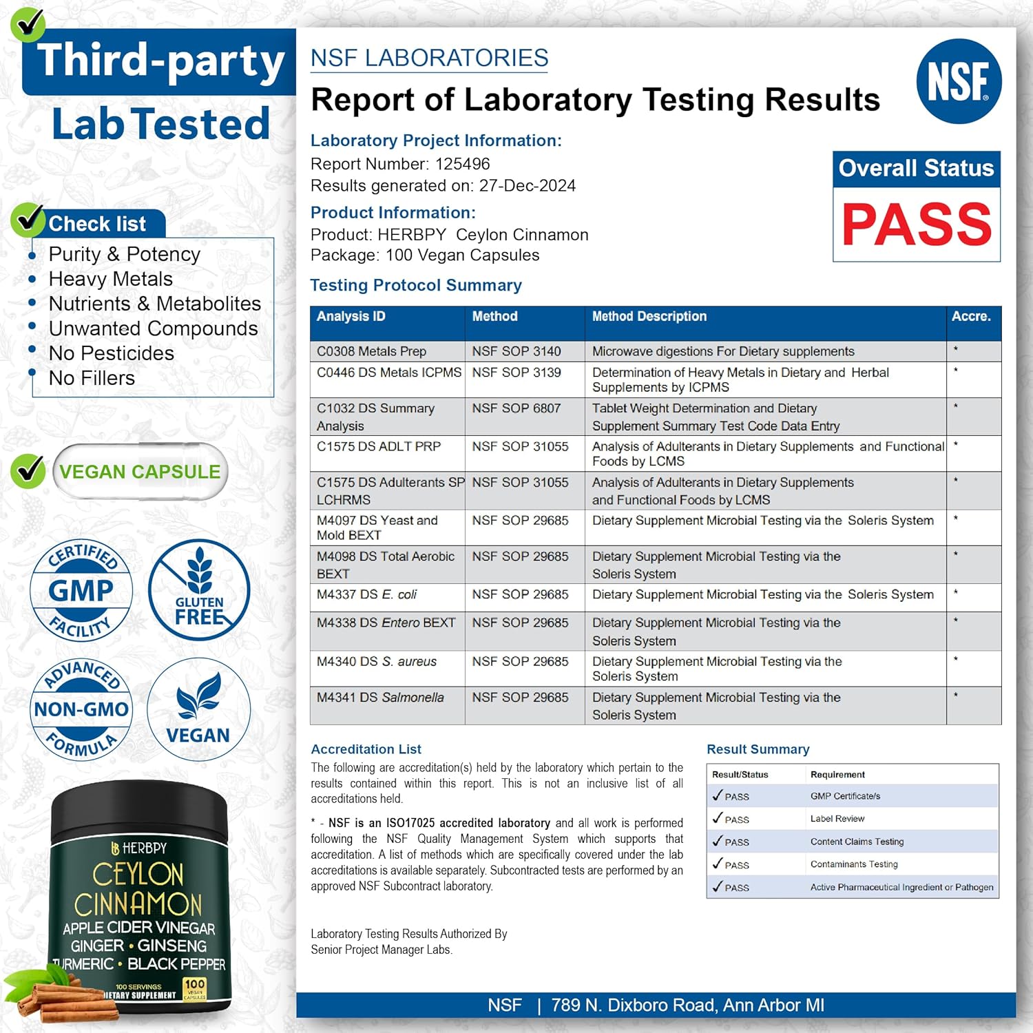 - Expiration & Dosage: Ceylon cinnamon supplements, encased in vegan capsules, 2-year expiration. We recommend a serving of 1 Cinnamon capsule daily as part of a healthy lifestyle, supplying a potent blend of 6 herbs. It is subjected to stringent testing at global third-party ISO 17025 labs to ensure purity and safety.