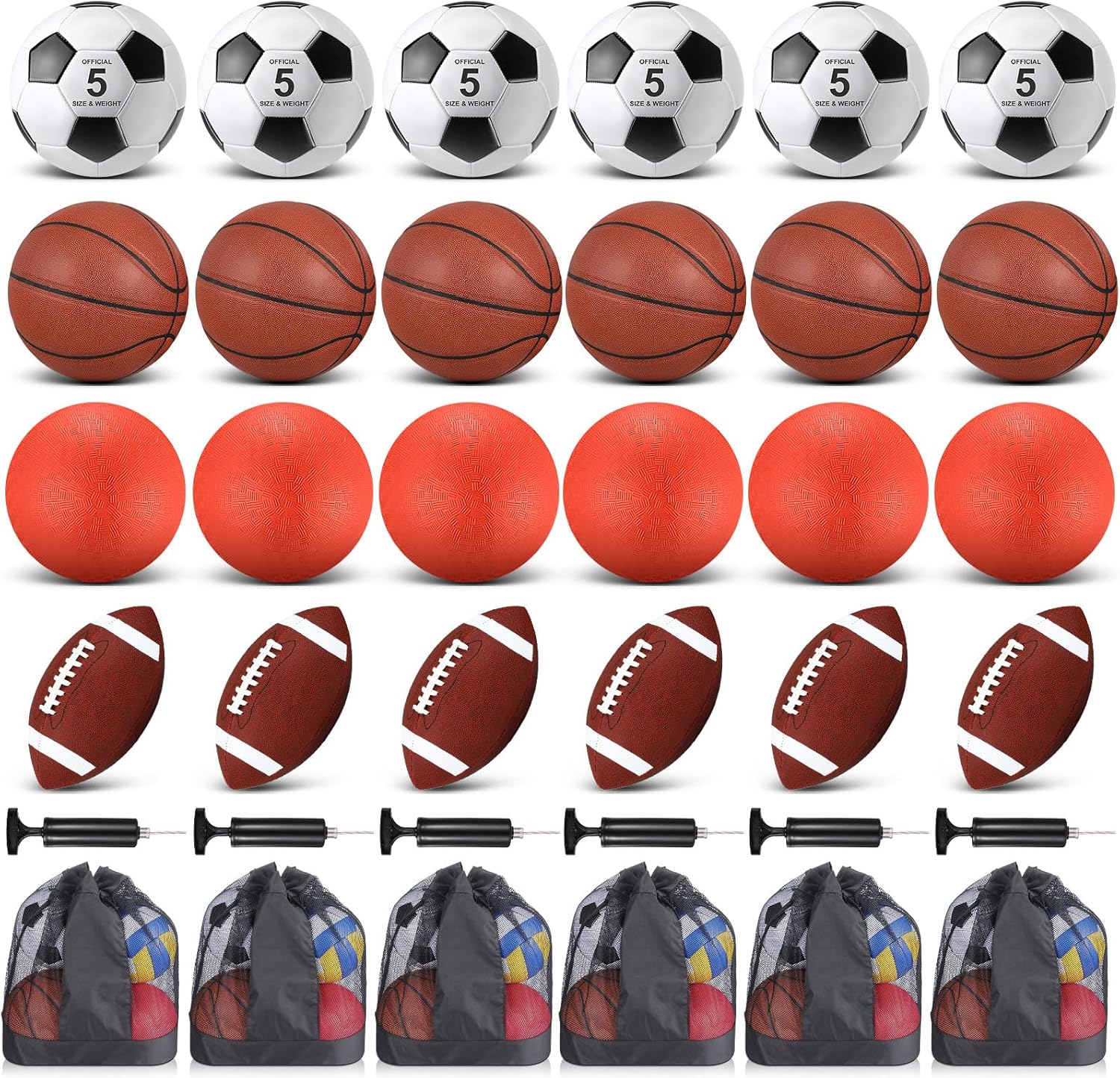 - What You Will Get: you will receive a sports equipment set, including 6 basketballs, 6 soccer balls, 6 footballs, 6 playground balls, 6 pumps and 6 sports equipment bags, enough quantity to meet your playing and replacement needs