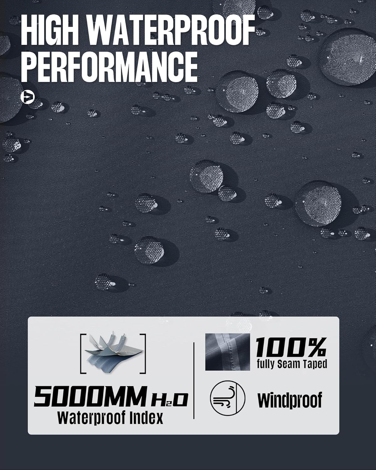 - Enhanced Waterproof: The rain jacket men is made of high-density waterproof and windproof fabric. Rain jacket with 100% fully sealed seams and a premium waterproof rating of 5000mm, it keeps rain out and keeps you dry and comfortable all day long in wet or rainy inclement weather.