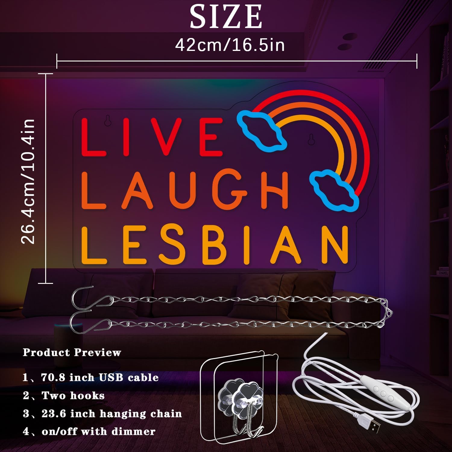 Live Laugh Lesbian Neon Sign Lesbian Neon Light Rainbow LED Neon Lights Gay Pride Day LED Neon Lights for Gay Lesbian Bar Bedroom Store Decoration