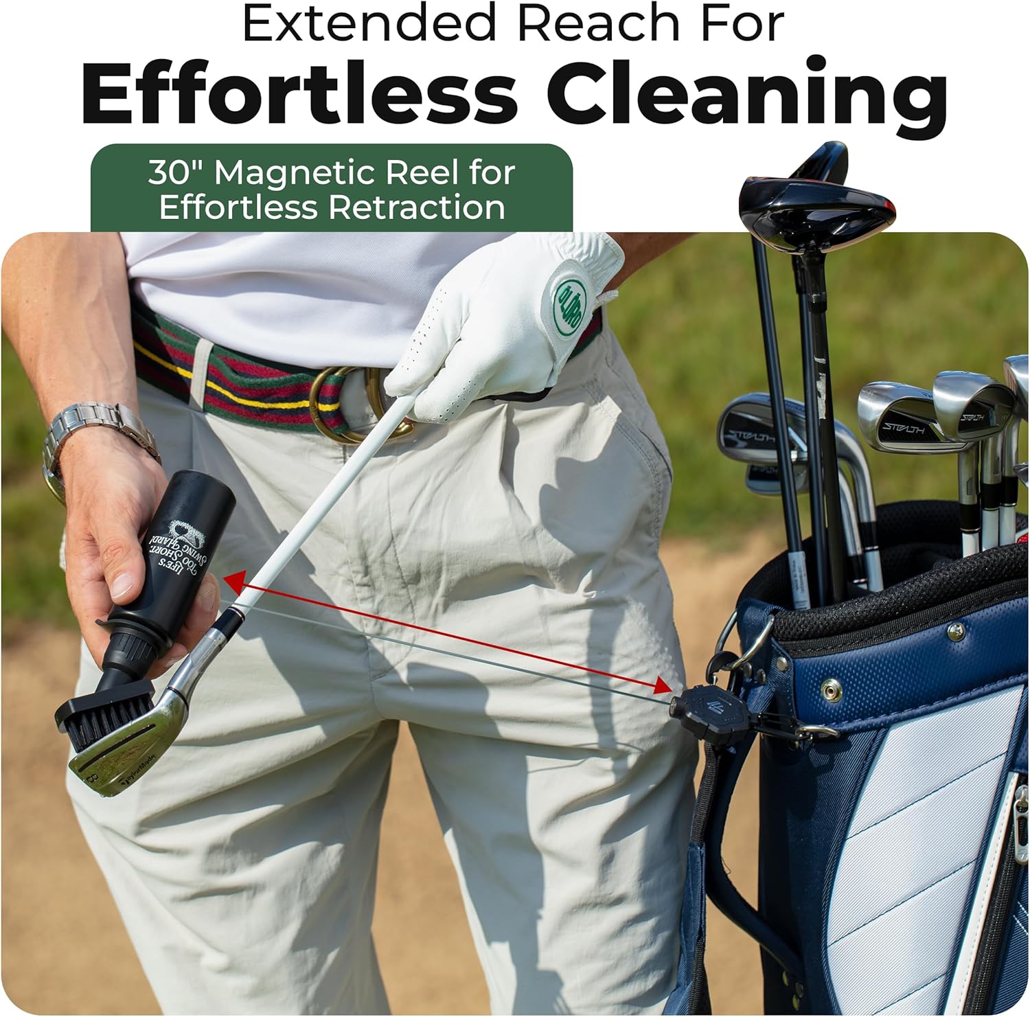 Premium Golf Club Cleaner with Anti-Sag Reel and Integrated Water Bottle - Golf Accessories for Men and Women - Essential Golf Club Brush for Golfer