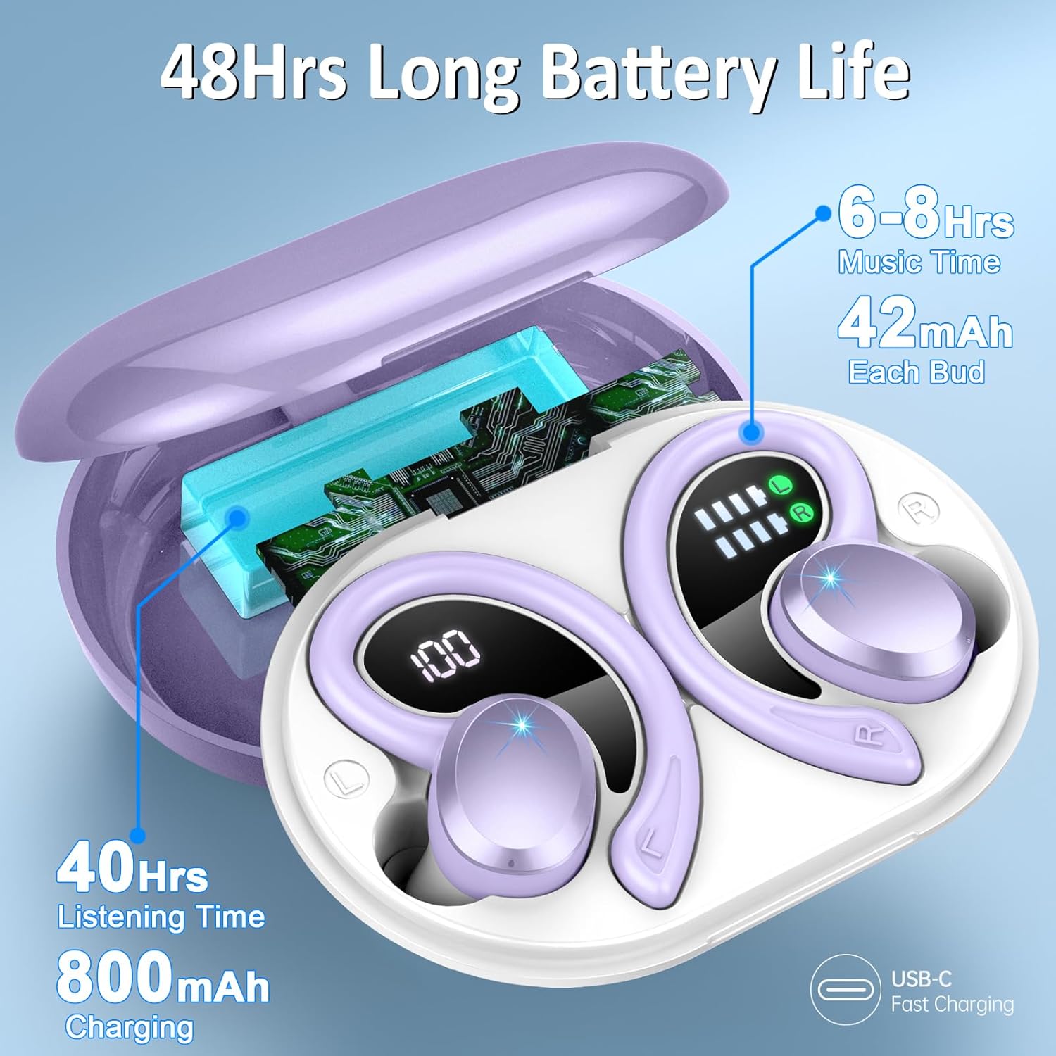 - 48Hrs Playtime & Dual Power Display: Each ear bud offers up to 8 hours of listening time on a single charge, allowing you to enjoy a total of 48 hours of music by taking turns with the charging case. Wireless earbud feature a dual LED digital display that provides real-time charging caseβs remaining power and ear bud wireless bluetooth charging status and plan your usage accordingly. Say goodbye to battery anxiety! Bluetooth headphones support wired charging with a Type-C cable(included in the package).