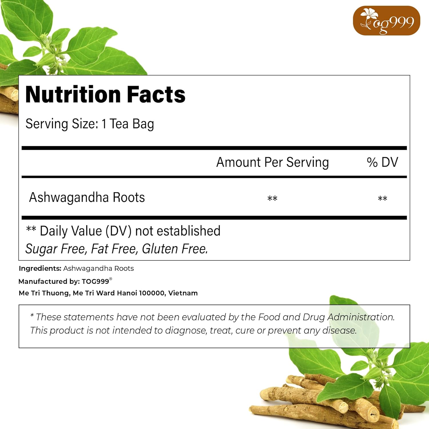 TOG999, Premium 120 Ashwagandha Root Tea Bags, 100% Natural & Pure from Ashwagandha Root. No Sugar, No Caffeine, No Gluten, Vegan.