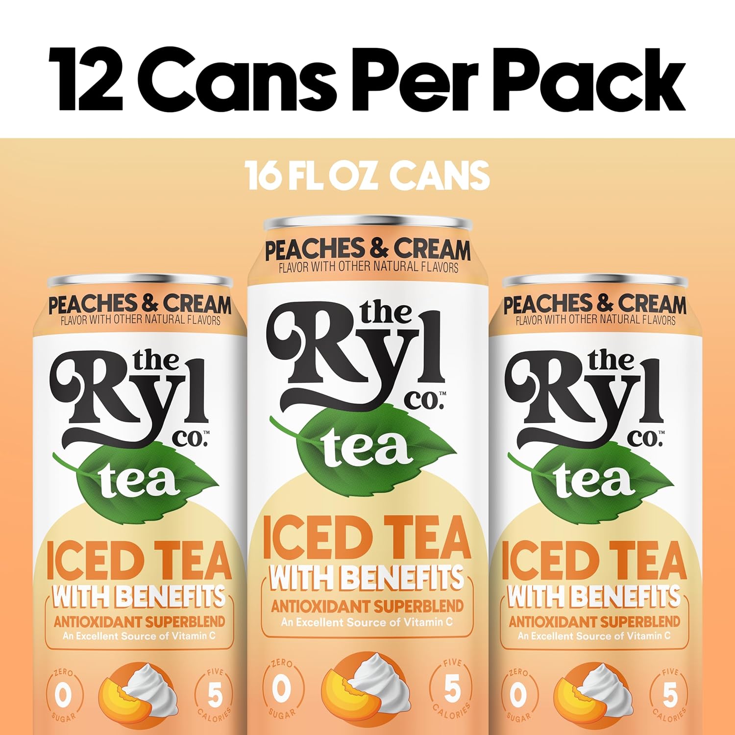 Ryl Iced Tea, Peaches & Cream Tea, Antioxidant Superblend, Zero Sugar, Low Carb, Zero Calorie Iced Tea, 16.0 Fl Oz (12-Pack)
