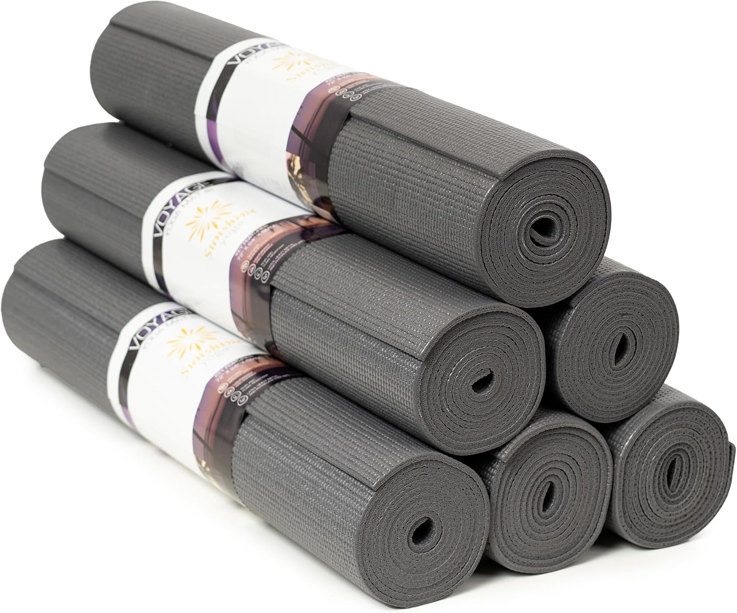 Sunshine Yoga Voyage Yoga Mat, 6 Pack, 72" x 24" Professional Studio and Gym Bulk Yoga Mats, 5mm Thick, Durable, Anti-Tear, Non Slip Fitness and Exercise Mats
