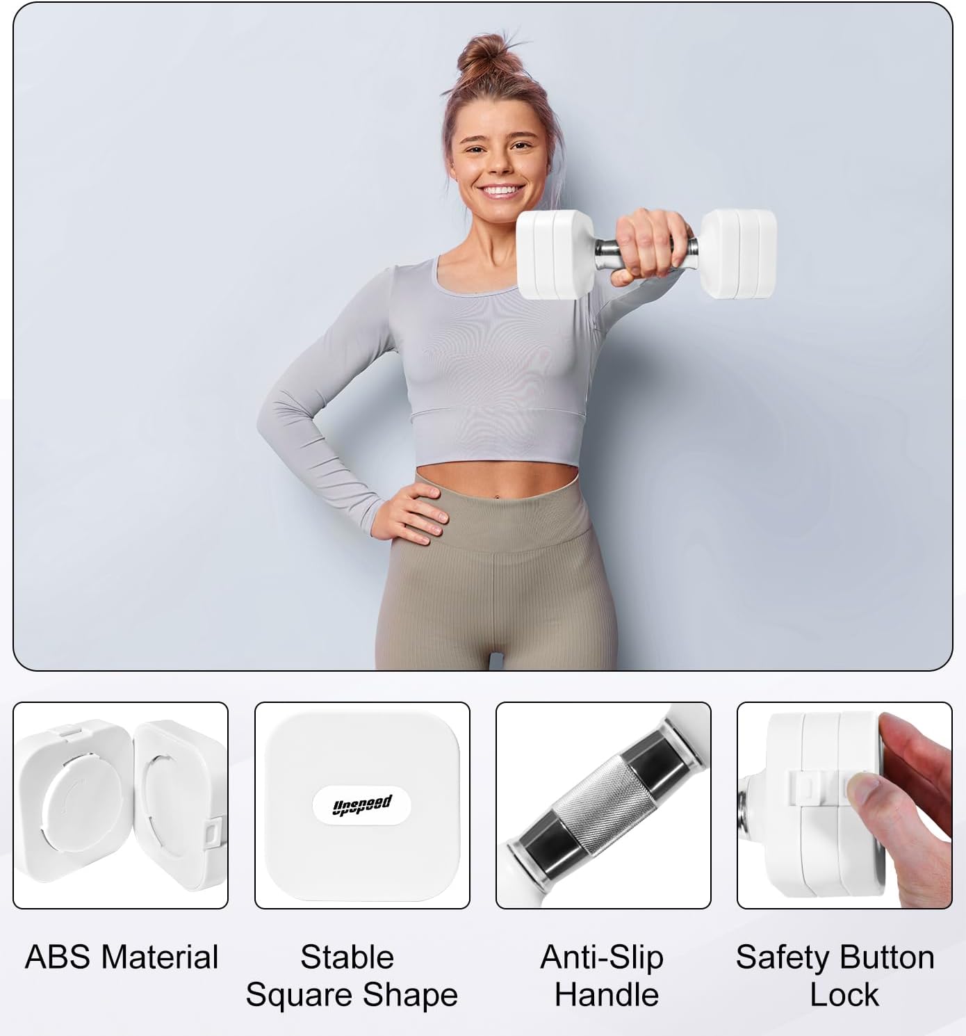 - The weights dumbbells set are square and not round. The square shape keeps them from rolling around on the floor or shelf. The handle boasts anti-slip strips to provide better gripping.