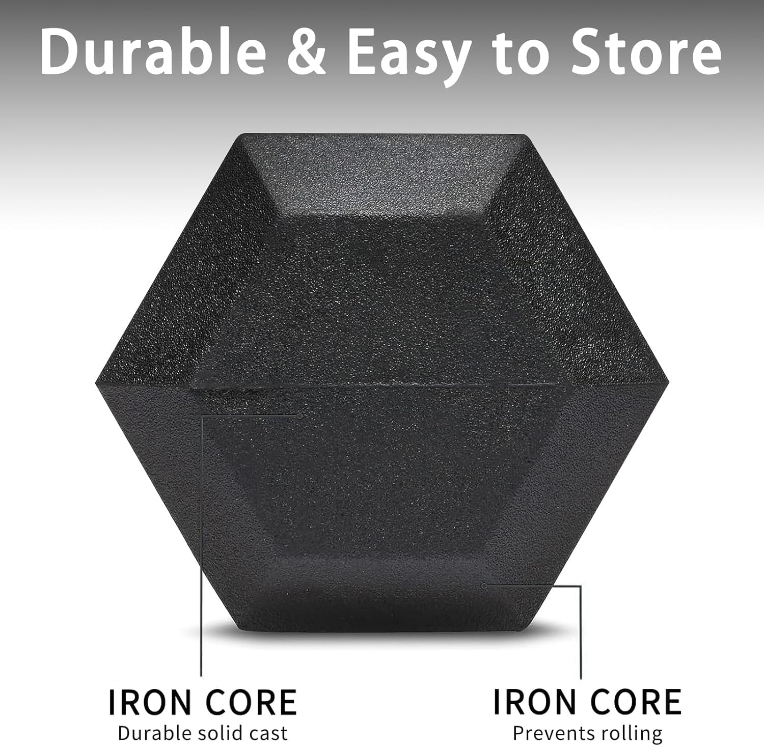 - MATERIAL: Constructed with high-quality rubber encasing over iron, these hex dumbbells offer exceptional durability and performance. The robust design ensures safe and effective workouts, making them perfect for strength training at home