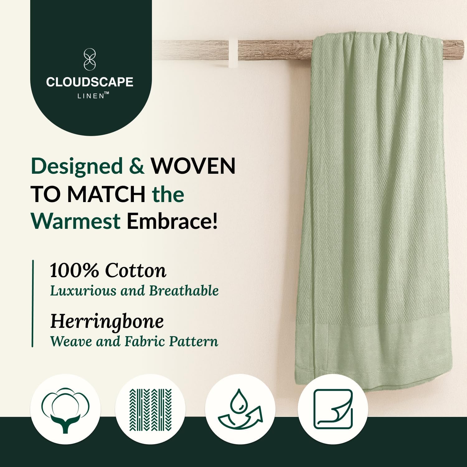 Cloud Scape Linen Herringbone Cotton Throw Blanket for Couch, Bed,Sofa, Home Decor, Soft, Lightweight, All-Season Bed Blanket, 50 x 70, Seafoam Green