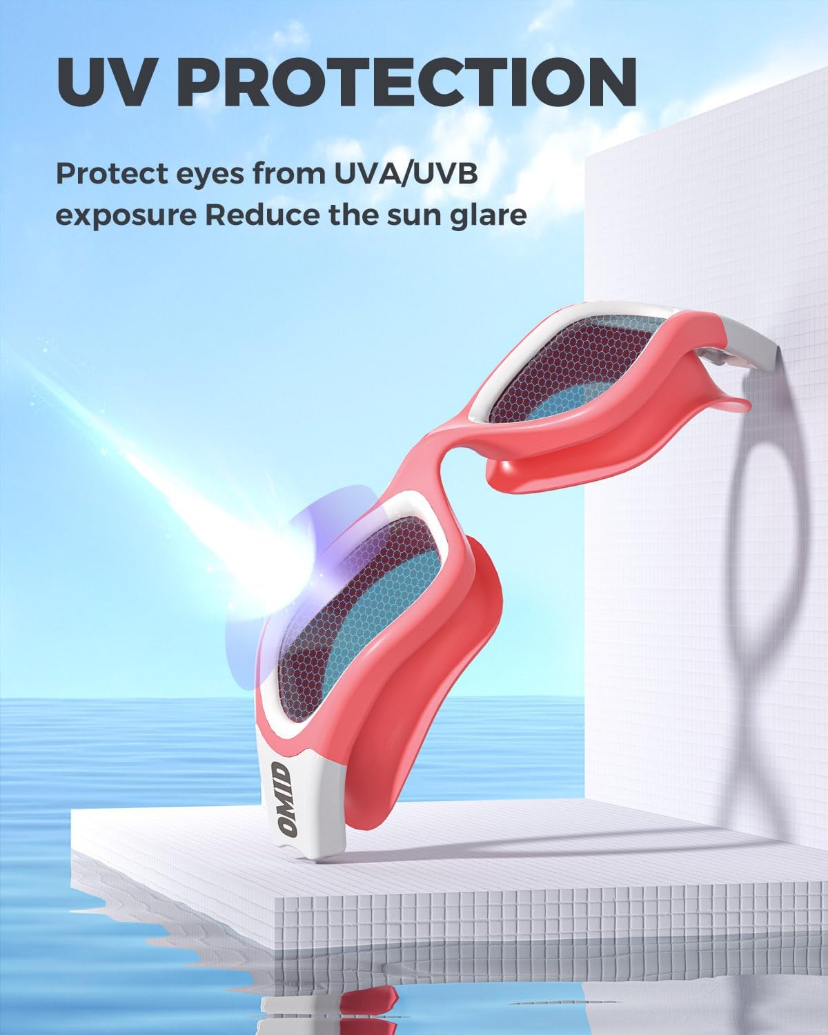 - 【Professional Leak-proof & UV Protection】Our swimming goggles for men designed with Ergonomic 3D frame ensures a perfect fit and never allows water leak in. In order to protect your eyes from irritation. OMID swim goggles are constructed with 111% UV protection to filter out harmful rays, which will bring you worry-free, crystal clear swims every time.