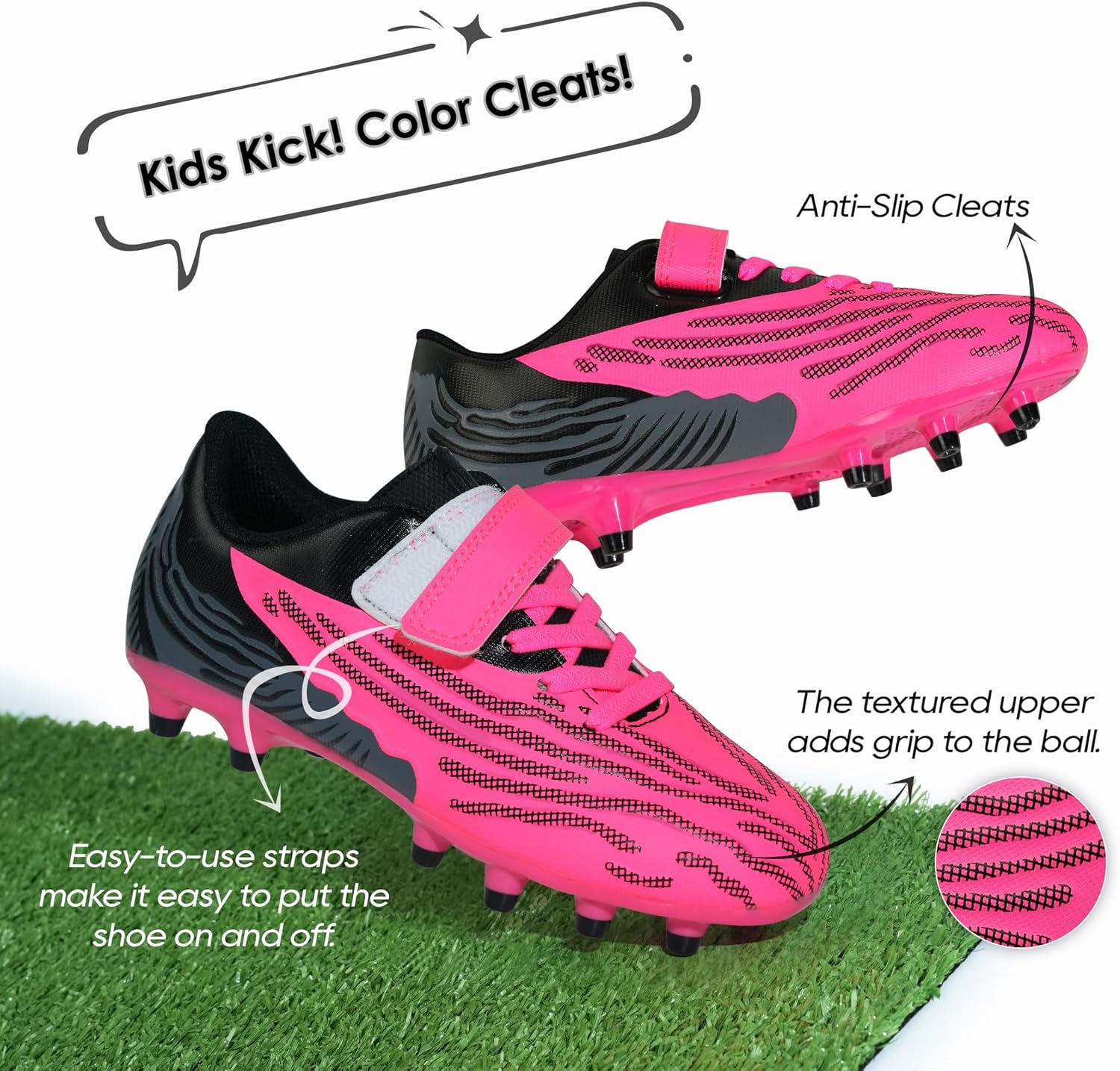 - Heel Support and Comfort: Built with reinforced heel support and a padded collar, these cleats offer superior comfort and stability, allowing your child to focus fully on the game.