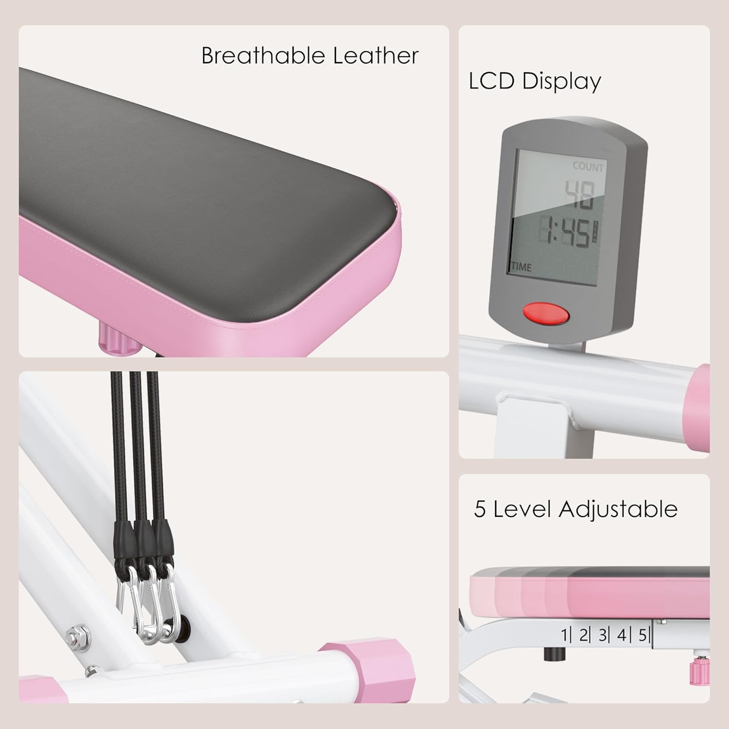 - 【TRACK YOUR FITNESS】The Squat Assist Trainer comes with a built-in LCD display that provides real-time feedback on your workout, including calories burned, scan, time, and count.The machine also includes two resistance bands that freely add or remove tension,allowing you to customize your workout to suit your fitness level and goals.