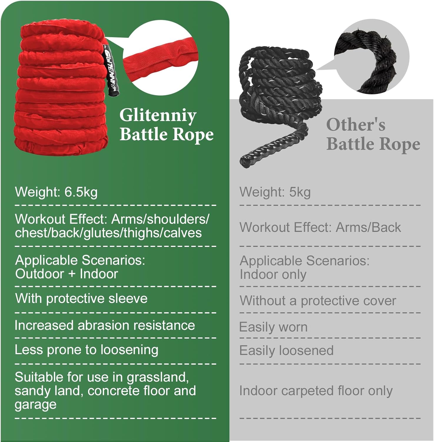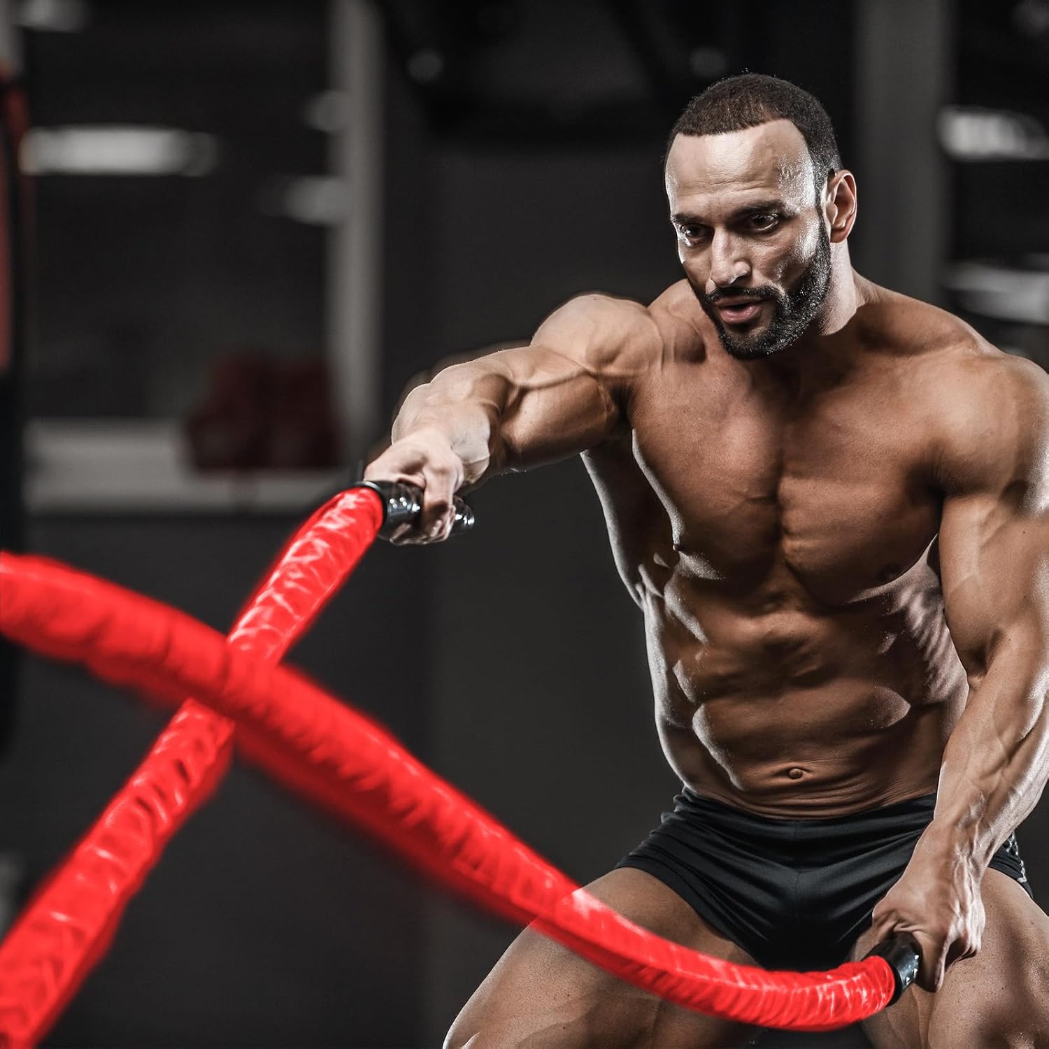 - Exercise Rope with NON-SLIP Design Handle: The handle is designed to protect your hands with an added non-slip design that provides a firm grip when you are using the battle rope