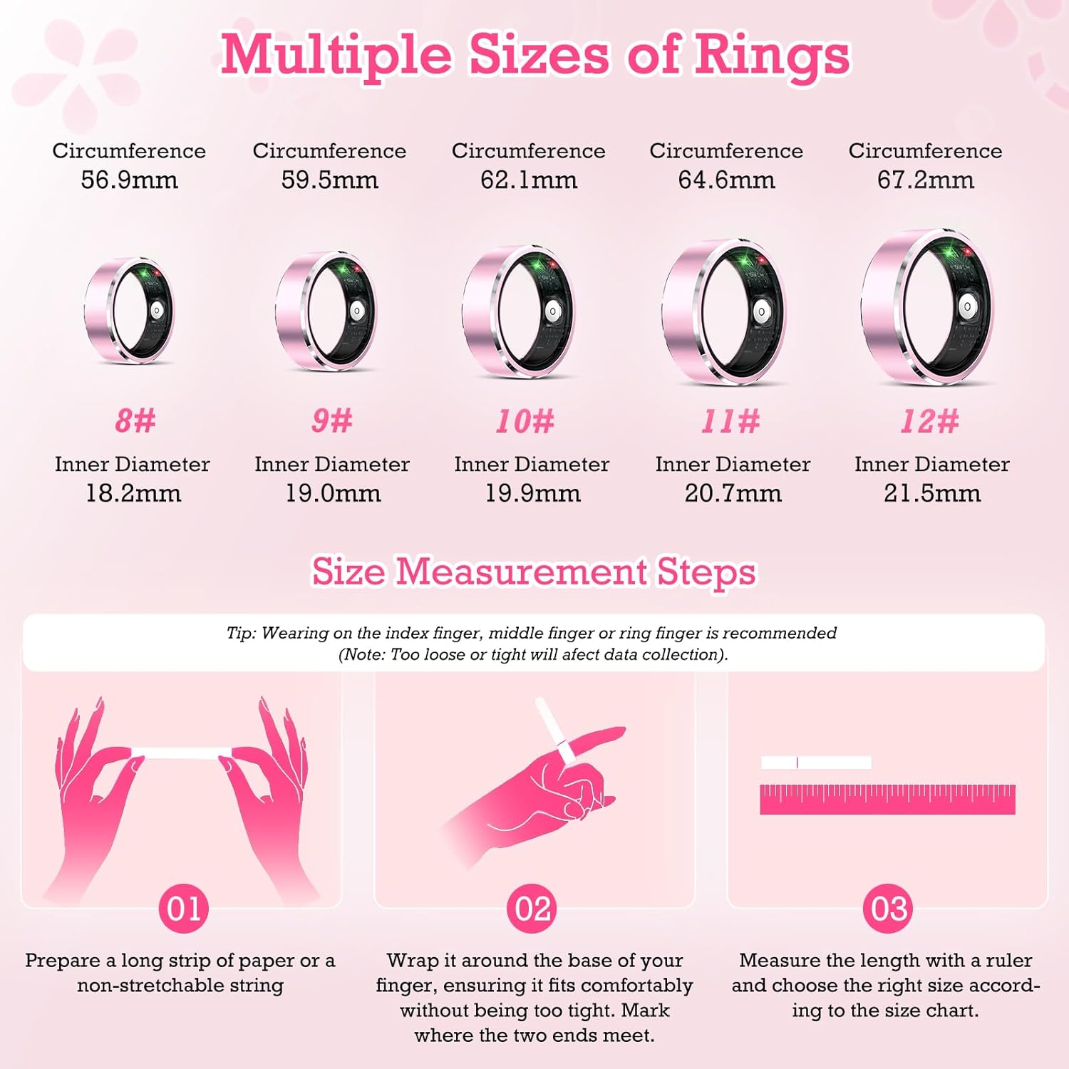 Smart Ring Health Tracker, Sleep Tracker Ring with Heart Rate, Waterproof Fitness Ring for Activity Monitoring/Steps/Distance/Calories,Air Gestures,Up to 7-Day Battery, for iOS Android (Light Pink,#9)