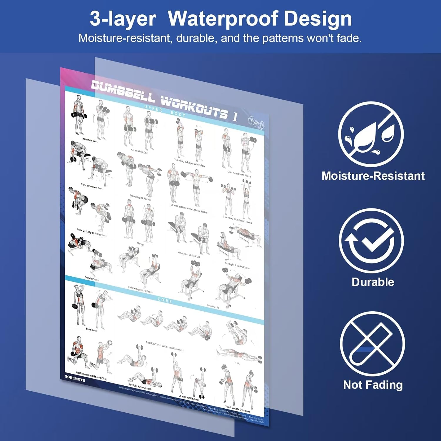 - WATERPROOF DESIGN - The dumbbell exercise posters for home workouts are designed with protective films that resist moisture, prevent pattern fading, and ensure long-lasting durability.