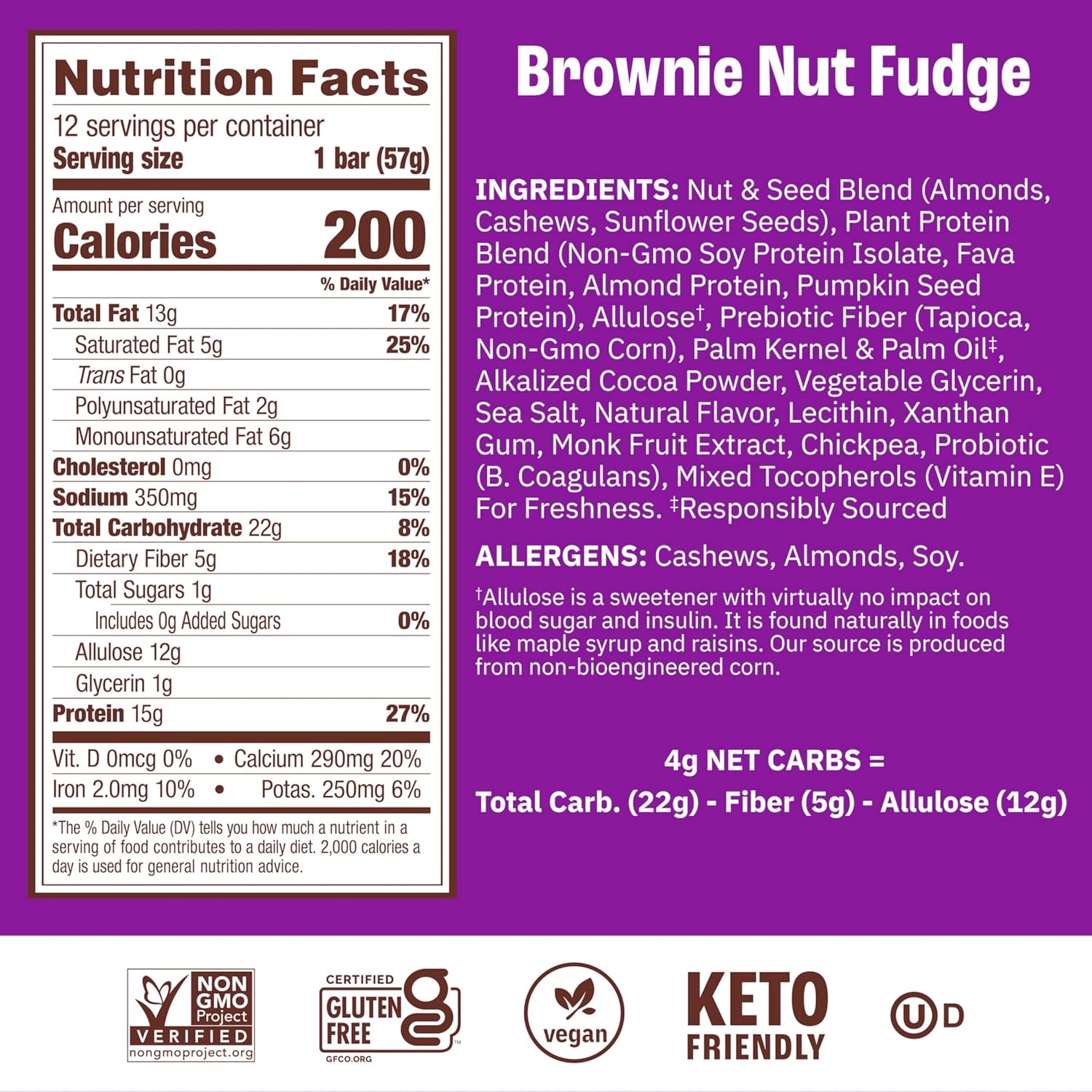 Munk Pack 15g Probiotic Keto Protein Bars - Low Sugar, High Protein -1g Sugar, 4g Net Carbs. Vegan + Plant Based Gut Health. Low Carb Healthy Snack Bar. Brownie Nut Fudge