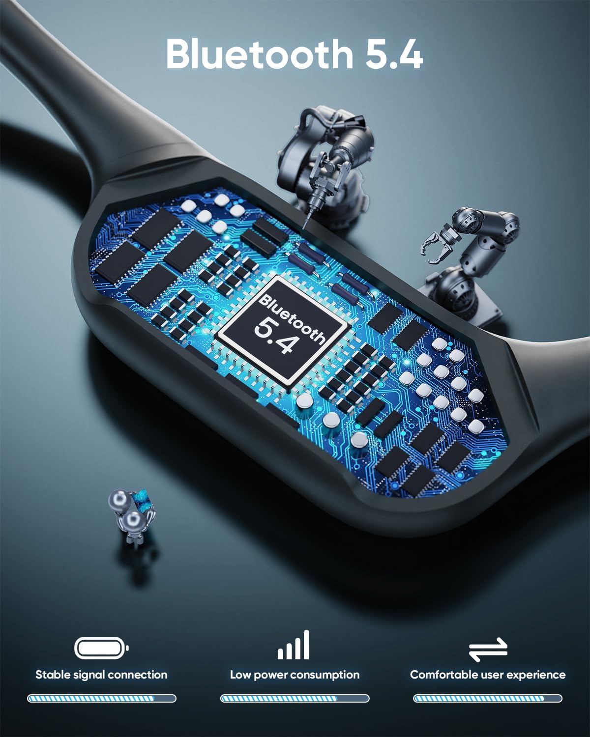 - Bluetooth 5.4 - bone conduction headphones are equipped with the latest Bluetooth 5.4 chip, which can provide a stable connection of up to 10 meters. headphones can connect to 2 Bluetooth host devices, allowing you to easily switch between your laptop and smartphone, and you can listen to music, audiobooks, make and receive calls.