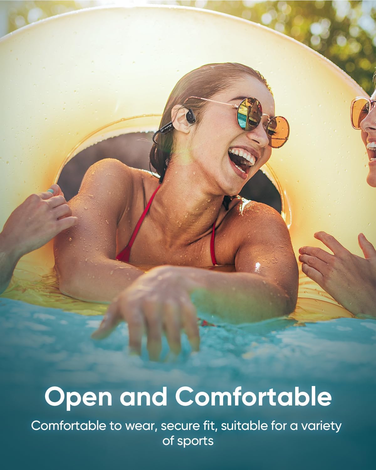 - Open Ear Comfort - open earphones use bone conduction technology to ensure all-day earplug-free and comfortable listening, keeping the inner ear canal clean, allowing you to understand the surrounding sounds while enjoying the music. For safety reasons, it is perfect for indoor and outdoor sports such as running, cycling, walking, exercising and traveling.