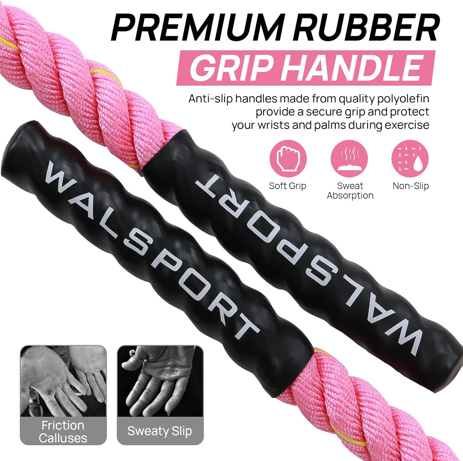 - Premium Comfort & Durability- Anti-slip polyolefin handles ensure a secure grip; durable polymer fiber rope resists wear for long-term resilience.