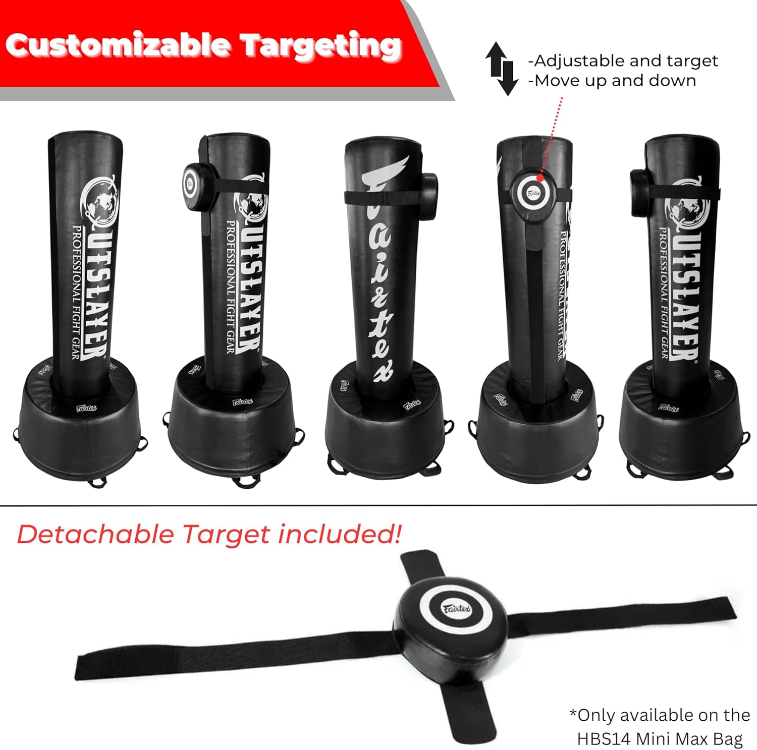 - SOFT, STRIKABLE BASE – SAFE & MESS-FREE: Unlike traditional punching bags with hard plastic bases, the HBS14 Mini Max features a soft, foam-filled base that reduces the risk of injury from low kicks and strikes. Plus, there’s no need for sand or water, so it’s ready for immediate training without the mess.