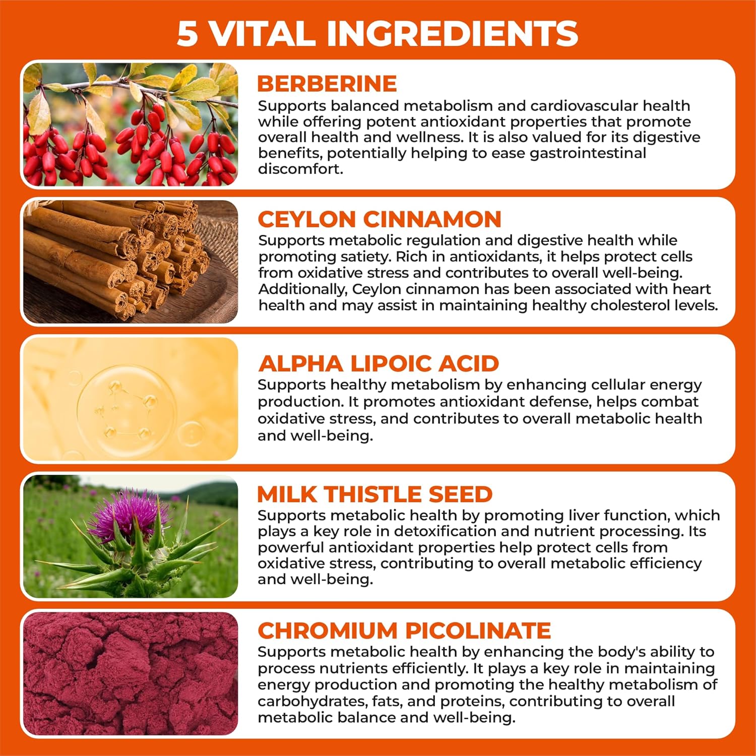 Berberine Supplement with Ceylon Cinnamon, Chromium, Alpha Lipoic Acid, Metabolic Care Supports Metabolism & Cardiovascular Health and Immune System, Helps Maintain Steady Energy Levels