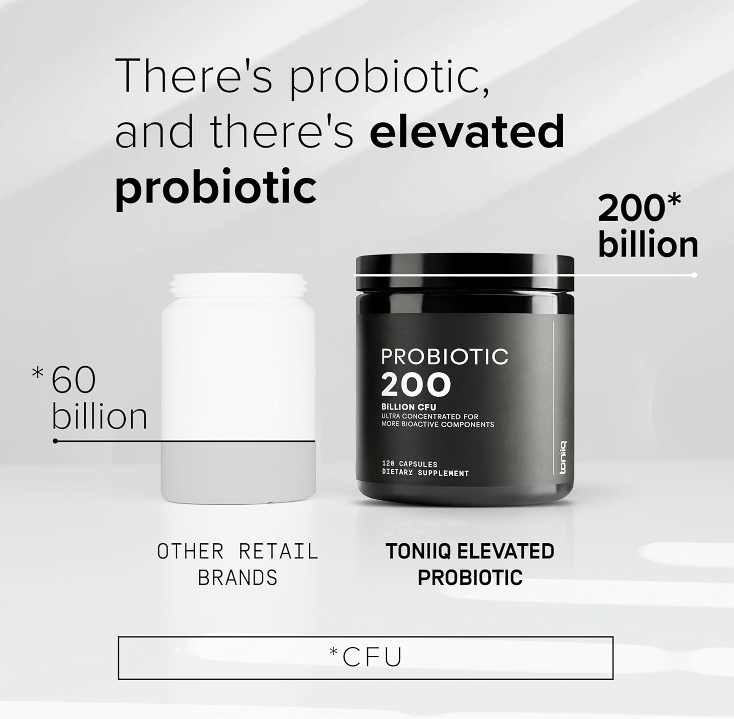 - The Highest Verified CFU Count - At over 200 Billion CFU per serving with 30 clinically studied broad spectrum strains, Toniiq's Probiotic 200 is setting a new standard for what is possible with probiotics.