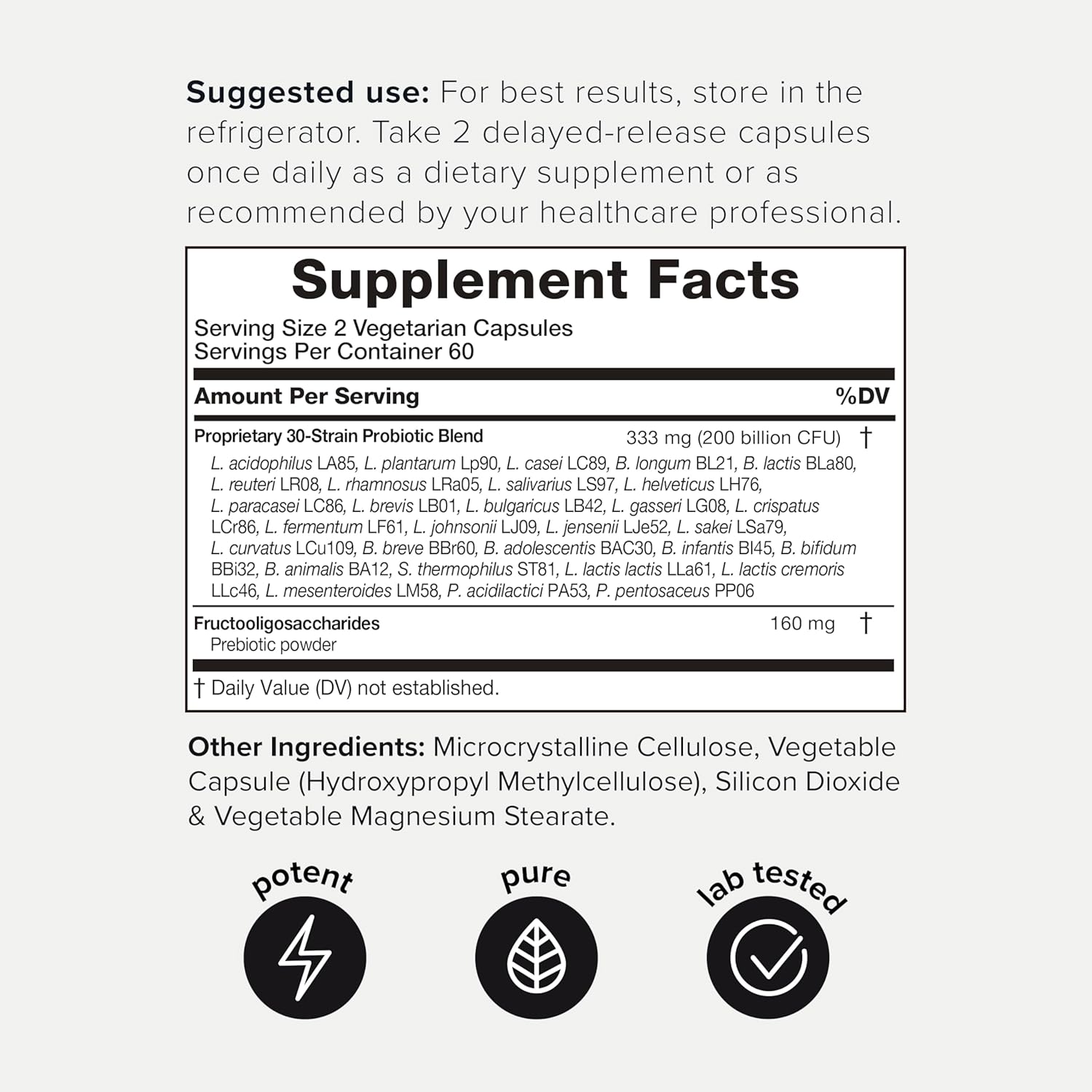 - Product Benefits : 200 Billion CFU Probiotic Supplement 30 Verified Third-Party Tested Strains; Fully Shelf-Stable Probiotics with Prebiotic Blend; Extended Release Capsules; 3rd Party Tested;Probiotics for Men & Women 200 Billion CFU Probiotic Supplement 30 Verified Third-Party Tested Strains; Fully Shelf-Stable Probiotics with Prebiotic Blend; Extended Release Capsules; 3rd Party Test⦠See more