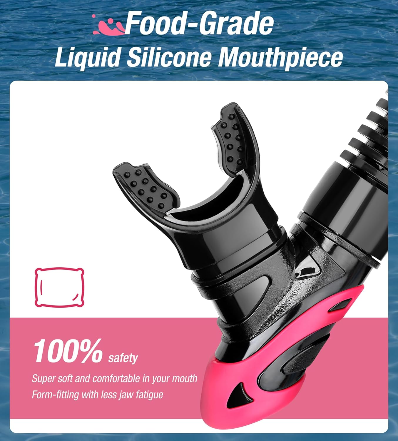 - Advanced top dry valve and splash guard: Aegend Dry snorkel profiled “paddle” dry top automatically closes when submerged, not allowing water entry. Even waves crash overhead, the splash-guard will prevent water from coming into the snorkel. Unlike the float ball valve which gets lodged easily by small sands or kinds of stuff, our new design valve won't be stuck, which give you comfortably breath.