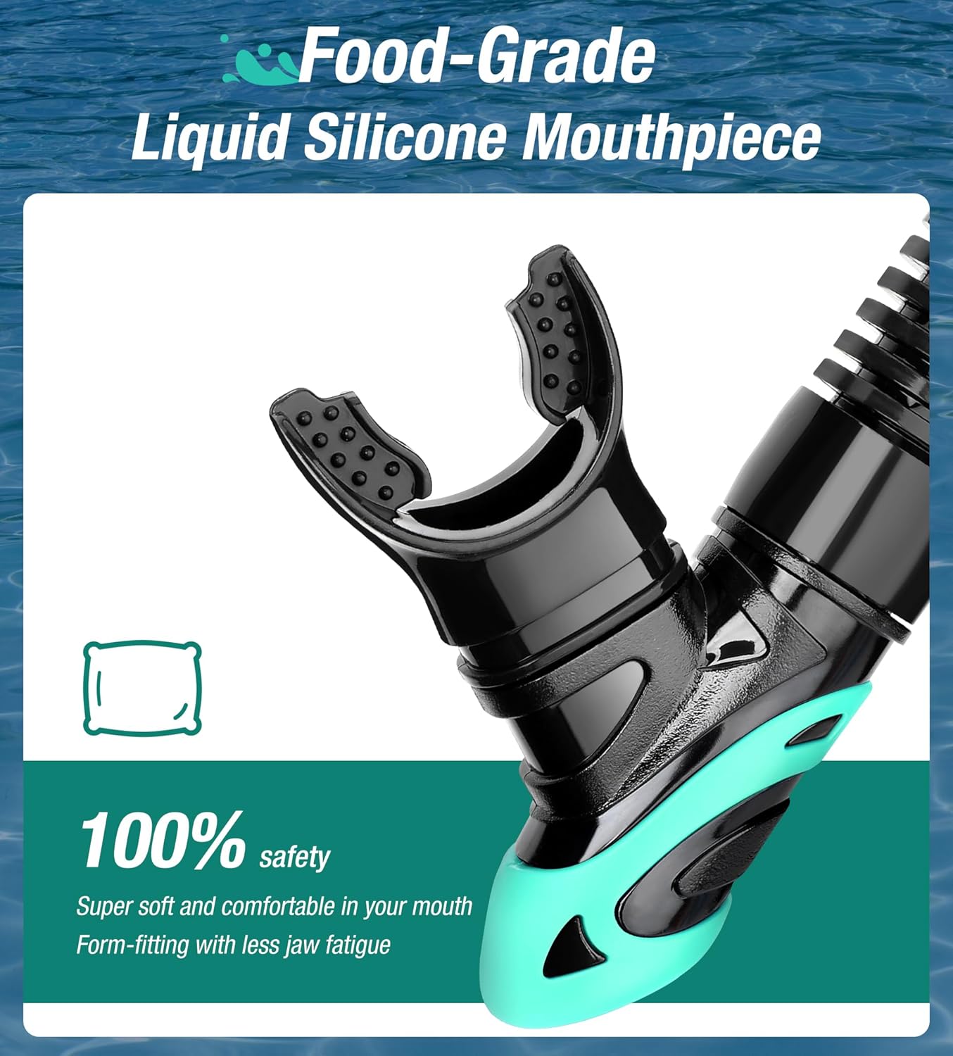 - Advanced top dry valve and splash guard: Aegend Dry snorkel profiled “paddle” dry top automatically closes when submerged, not allowing water entry. Even waves crash overhead, the splash-guard will prevent water from coming into the snorkel. Unlike the float ball valve which gets lodged easily by small sands or kinds of stuff, our new design valve won't be stuck, which give you comfortably breath.