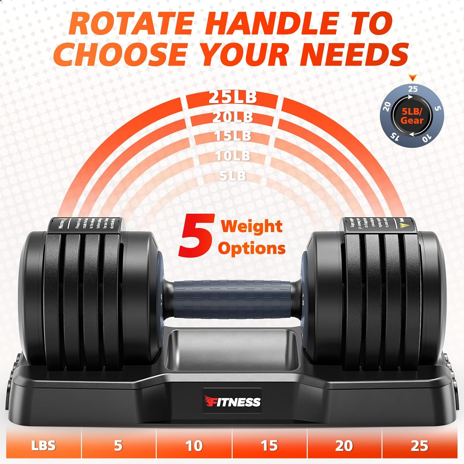 - 5 In 1 Weights Adjustable:Adjustable dumbbell weights set with 5-25 lb range in 5 lb increments via dial(each includes 5/10/15/20/25lb).Replace 5 traditional dumbbell sets for versatile home gym strength training