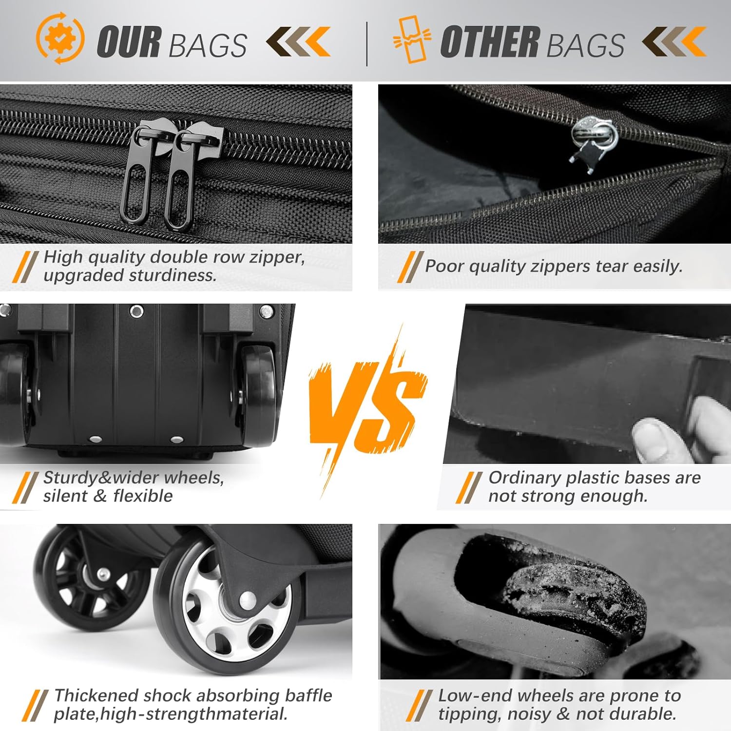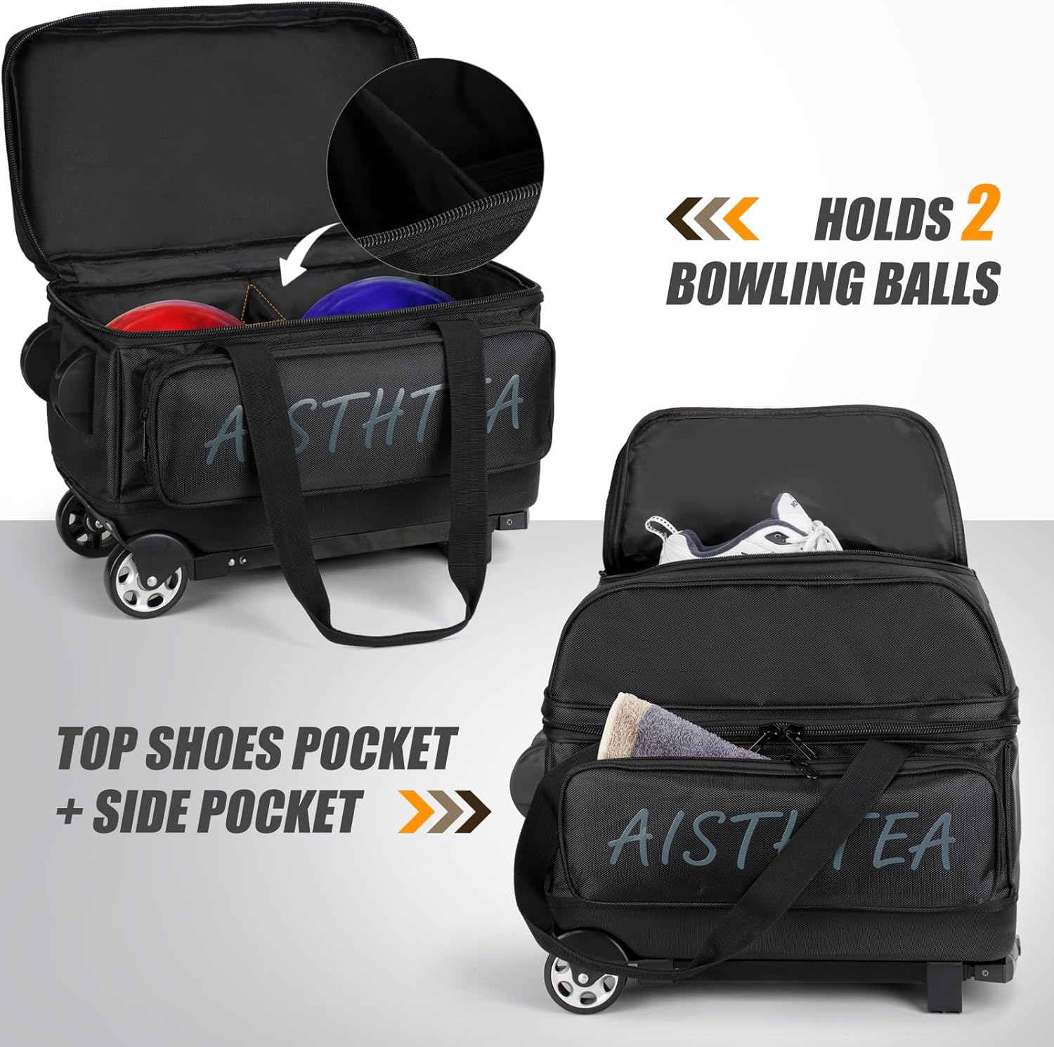 2-3 Ball Bowling Bag with Wheels, Rolling Trolley Bowling Bags with Large Separate Shoe Compartment and Oversized Accessory Pocket