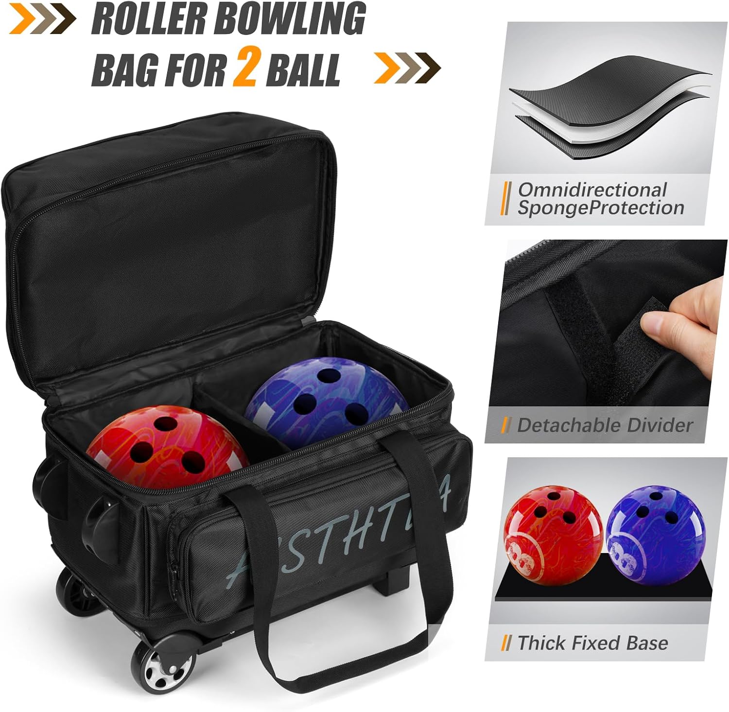 - ▶3 Ball Bowling Bag with Wheels - The Rolling Bowling Bag includes 5 compartment for 3 balls & shoes & towels & ball cleaner and other bowling accessories.