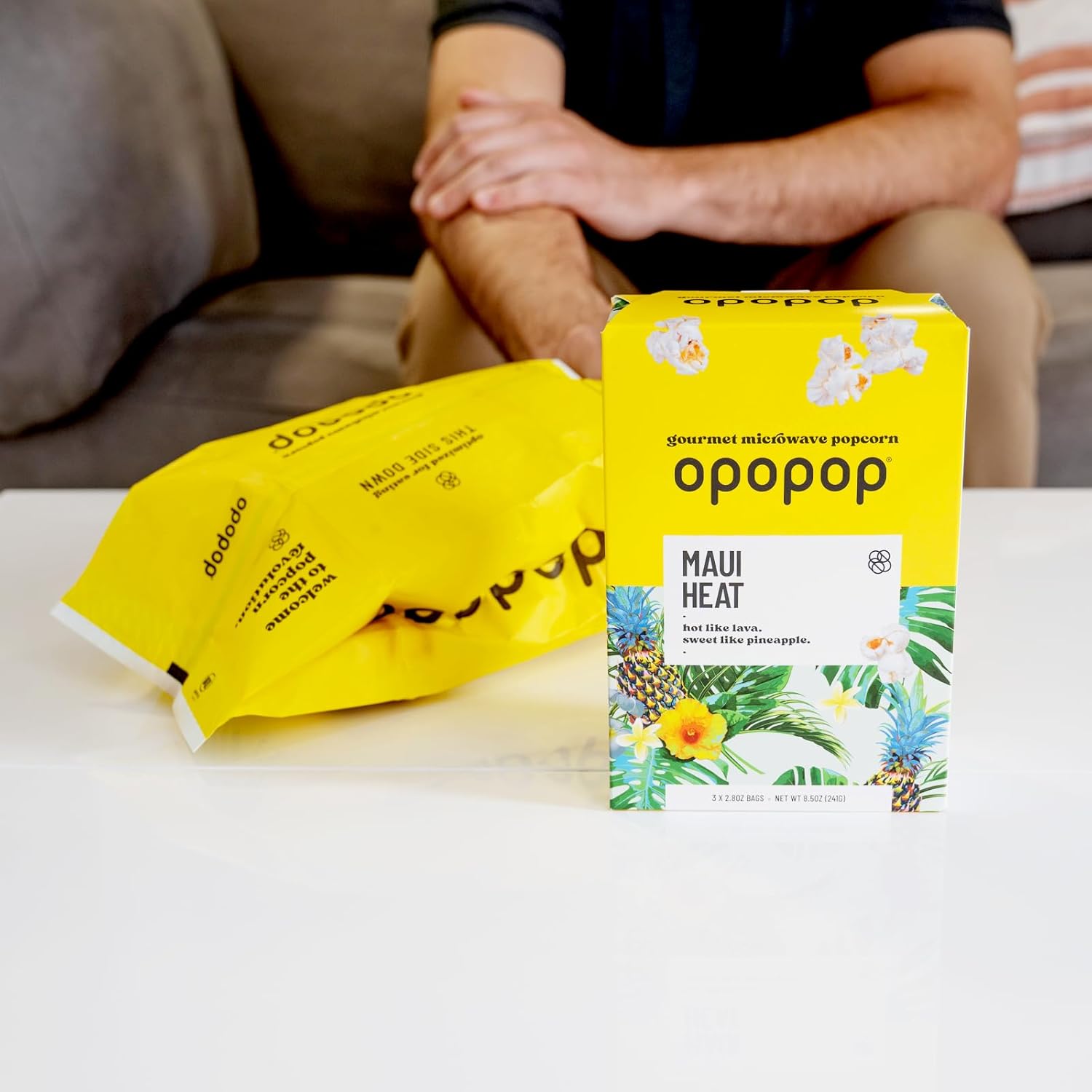 Opopop Microwave Popcorn - Maui Heat 2.8 oz., 9-Count - Sweet and Hot Popcorn, Flavored Popcorn, Non-GMO