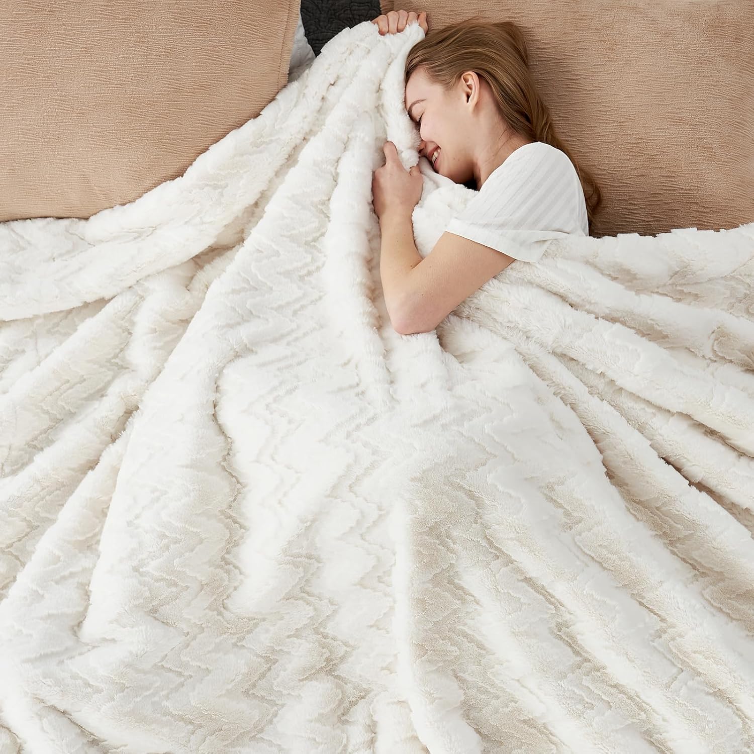 Cozy Bliss Faux Fur Throw Blanket for Couch - Ultra Soft Fuzzy Cozy Throw Gift Blankets for Women,Cream White Boho Blanket for Sofa Bedroom Living Room.50 * 60 Inches