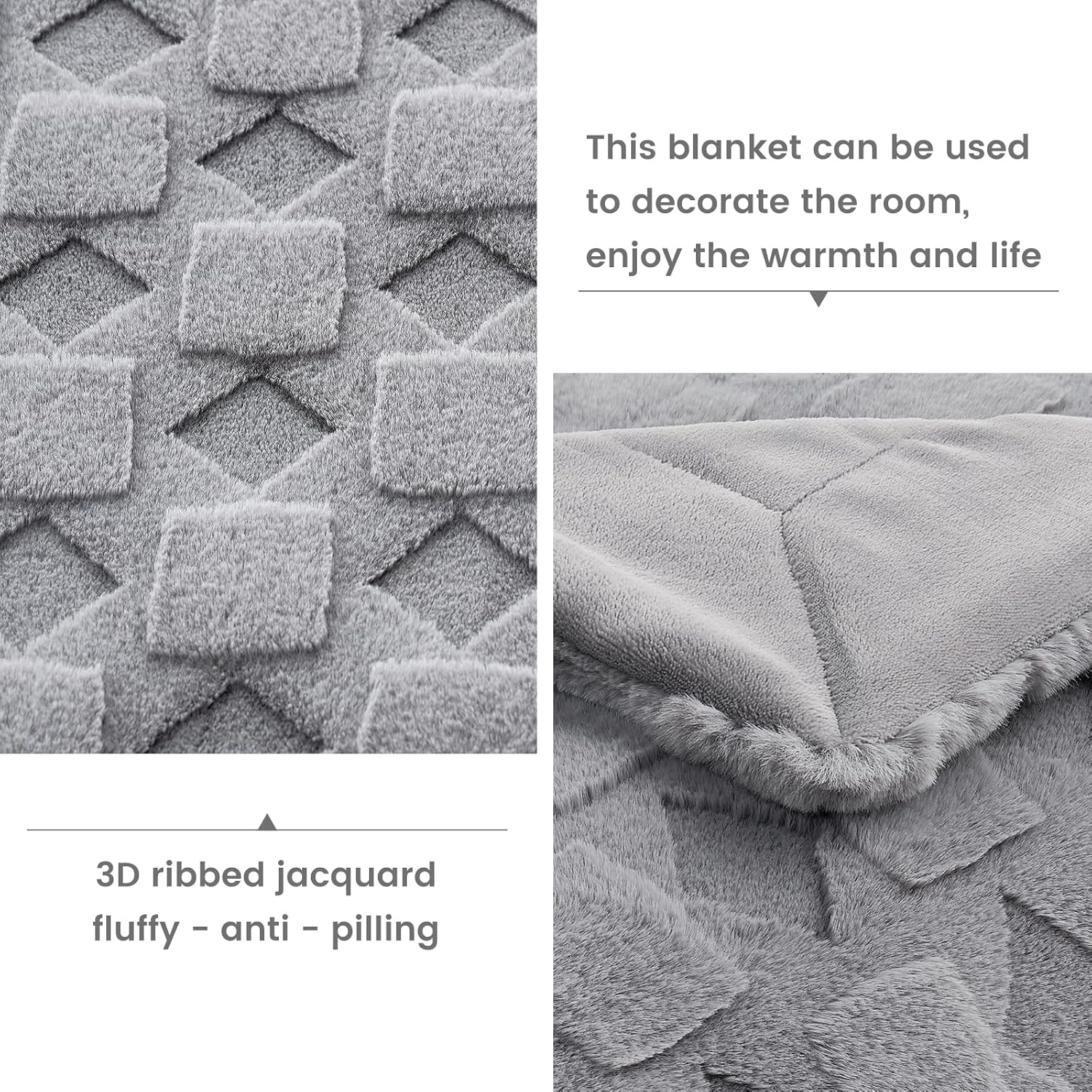 Cozy Bliss Faux Fur Throw Blanket for Couch - Soft Checkered Fuzzy Cozy Throw Gift Blankets for Women,Grey Blanket for Sofa Bedroom Living Room.(60 * 80 Inches,Grey)