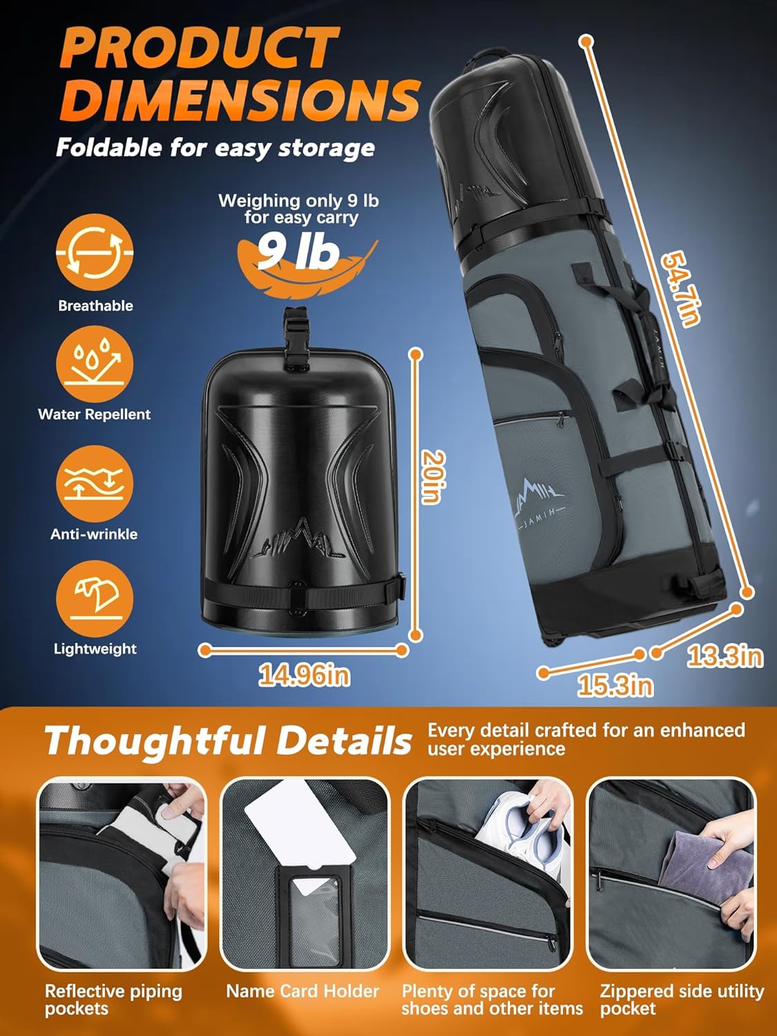 - 【Spacious Storage Space】: Overall size is 54.7*15.3*13.3 inches, this golf bag travel case has plenty of room for storage, ideal 54-inch length design for a full set of golf clubs, a cart bag, there is additional storage space for shoes, clothing and other golf accessories
