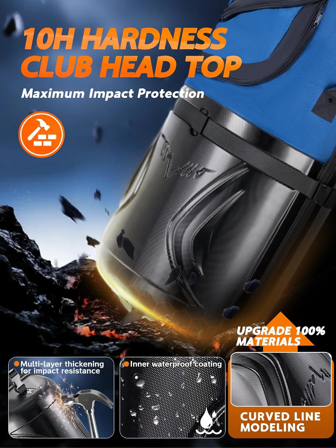 - 【Semi-Hard Shell Protection】: Our golf travel bag constructed from high-strength hard shell PC top, which effectively protect your golf clubs from collision and damage during travel. Soft and durable 1680D waterproof Oxford fabric body, protect your equipment from rain and moisture
