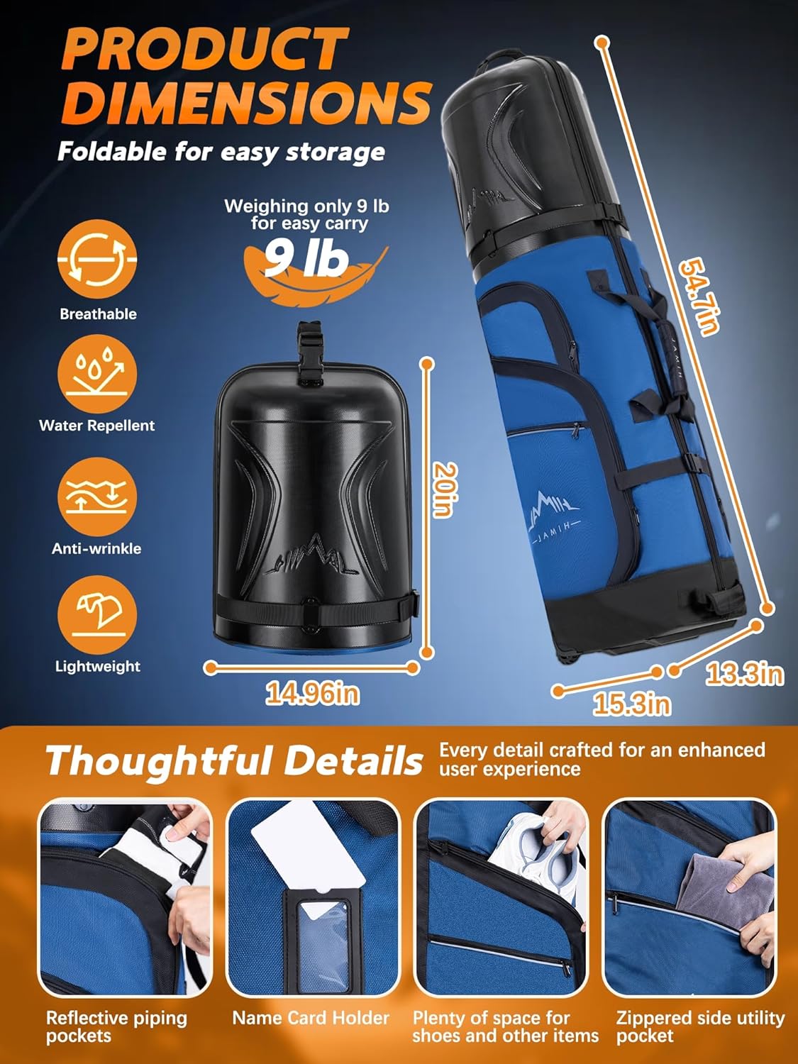 - 【Spacious Storage Space】: Overall size is 54.7*15.3*13.3 inches, this golf bag travel case has plenty of room for storage, ideal 54-inch length design for a full set of golf clubs, a cart bag, there is additional storage space for shoes, clothing and other golf accessories