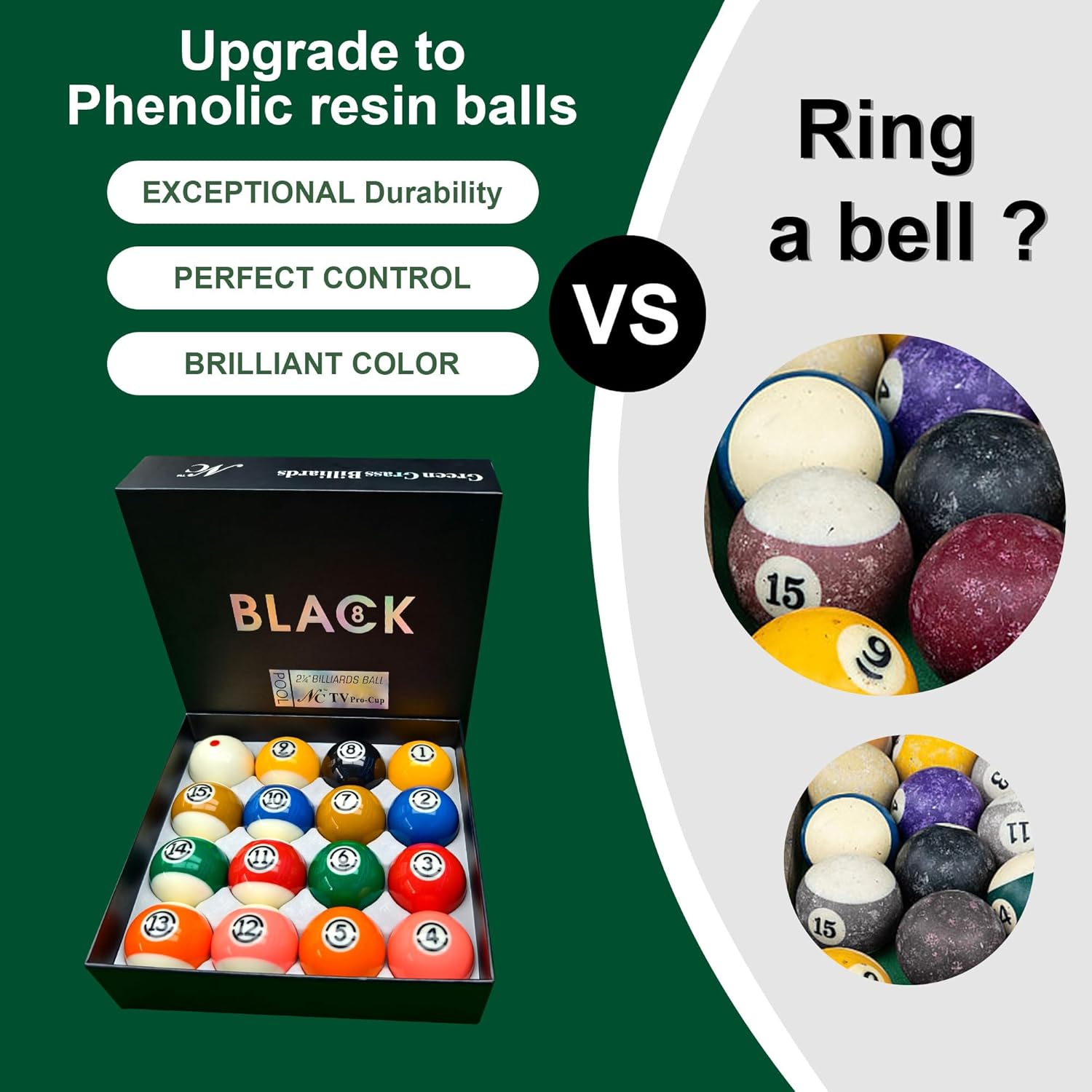 - Complete Set: Includes 16 billiard balls: 7 striped, 7 solid-colored, 1 black eight ball, and 1 cue ball. Perfect for any game, this set meets all your billiard needs with professional quality.
