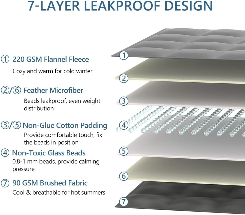 - Meet Your Various Needs: Our weighted blanket is perfect for adults, seniors, and pets. It can be used as a knee blanket for people with leg discomfort. When you are easily distracted at work, you can put heavy blanket over your shoulders, it can help you improve concentration. Body weighted blanket 7 lbs is perfect for people with "sensory needs" or "first-time users". Our weighted blanket is also a good choice if your pets are afraid of "rainy days"