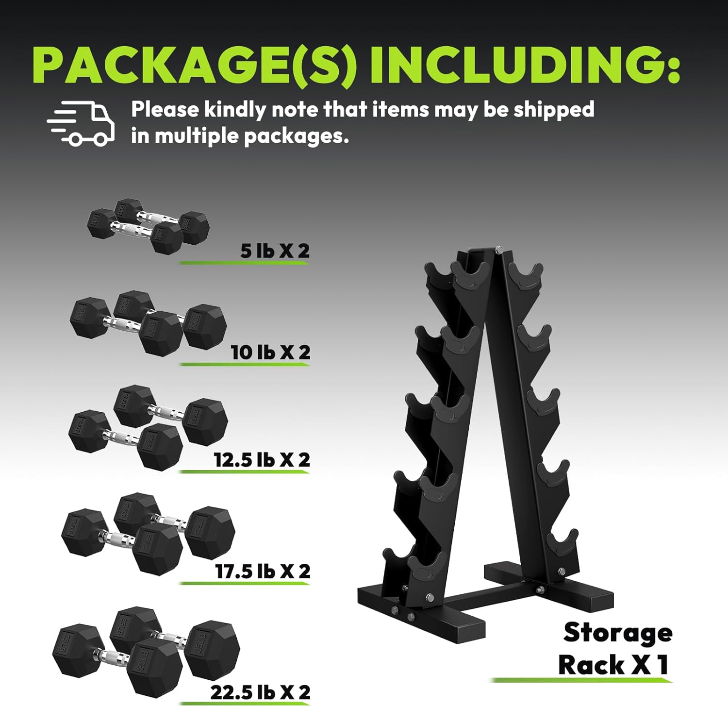 Hex Dumbbell Sets with Rack, 60-550 lb Rubber Encased Exercise & Fitness Dumbbells Set with Rack Option, Hand Weight for Strength Training, Weight Dumbbells