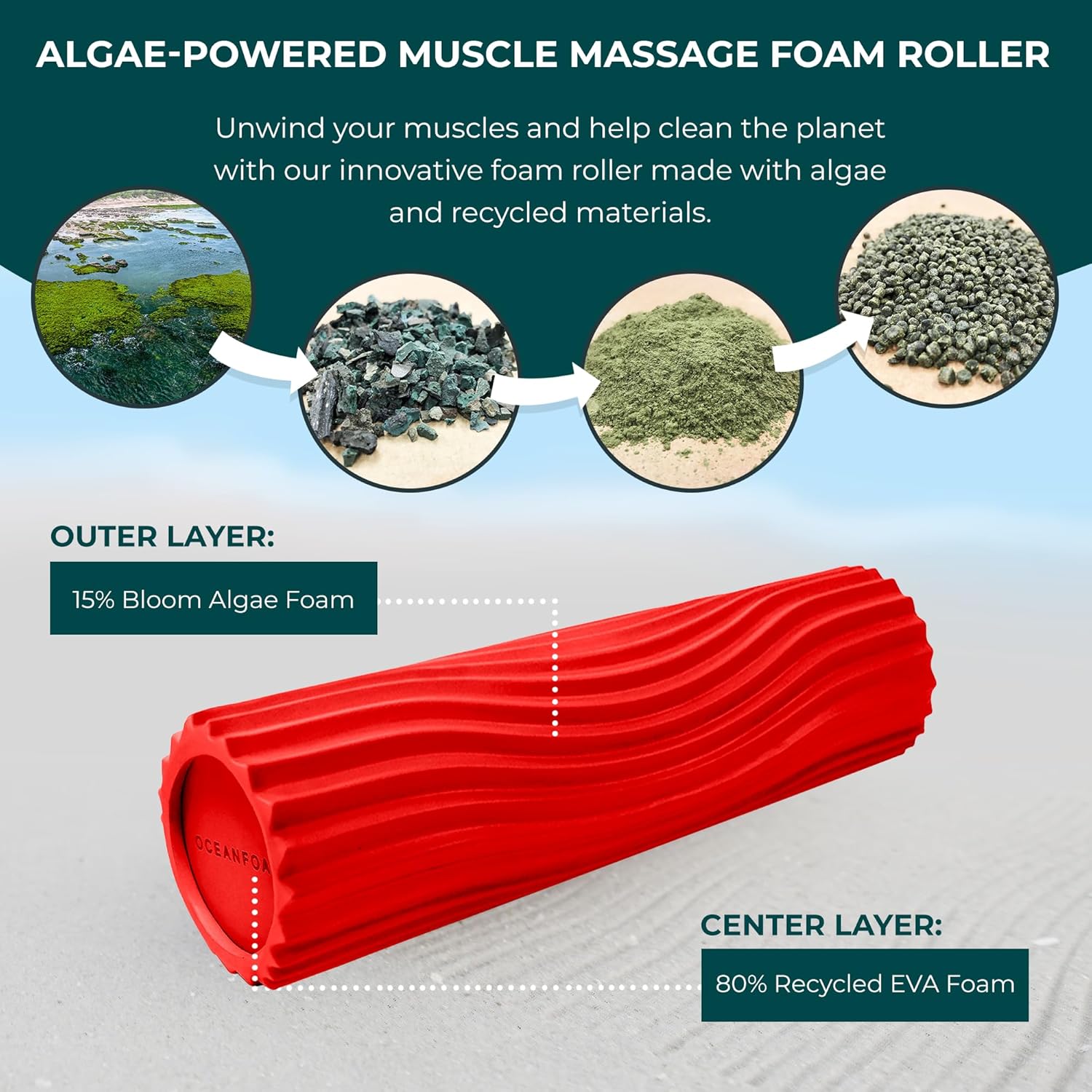 - Sustainable Materials: Made with eco-conscious materials including recycled foam and algae-based outer layer, contributing to a healthier planet while offering a firm surface ideal for muscle recovery and therapy.