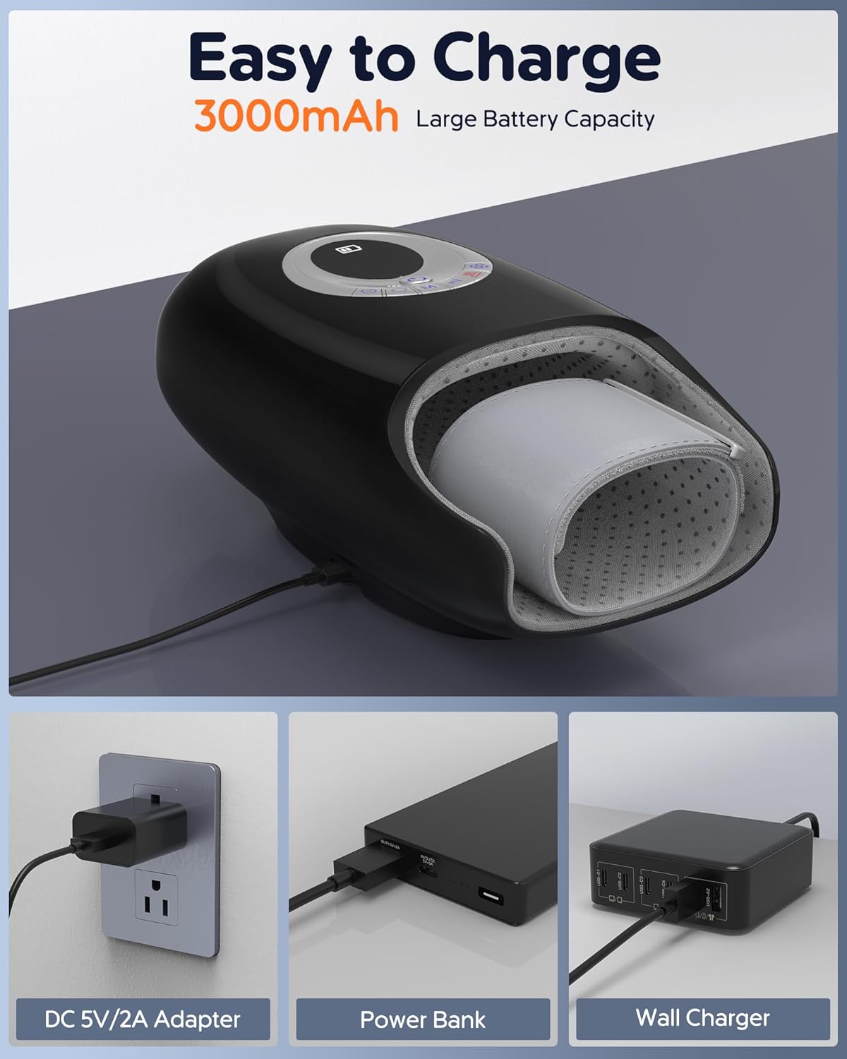 - 【6 Modes & 6 Intensity Levels for Personalized Comfort】 Customize your massage experience with six modes and adjustable intensity levels, ensuring the perfect fit for various hand sizes and preferences. Whether you prefer a gentle relaxation or a firm compression, this device adapts to your needs, making it an excellent choice for daily hand care, fatigue relief, and long-term wellness