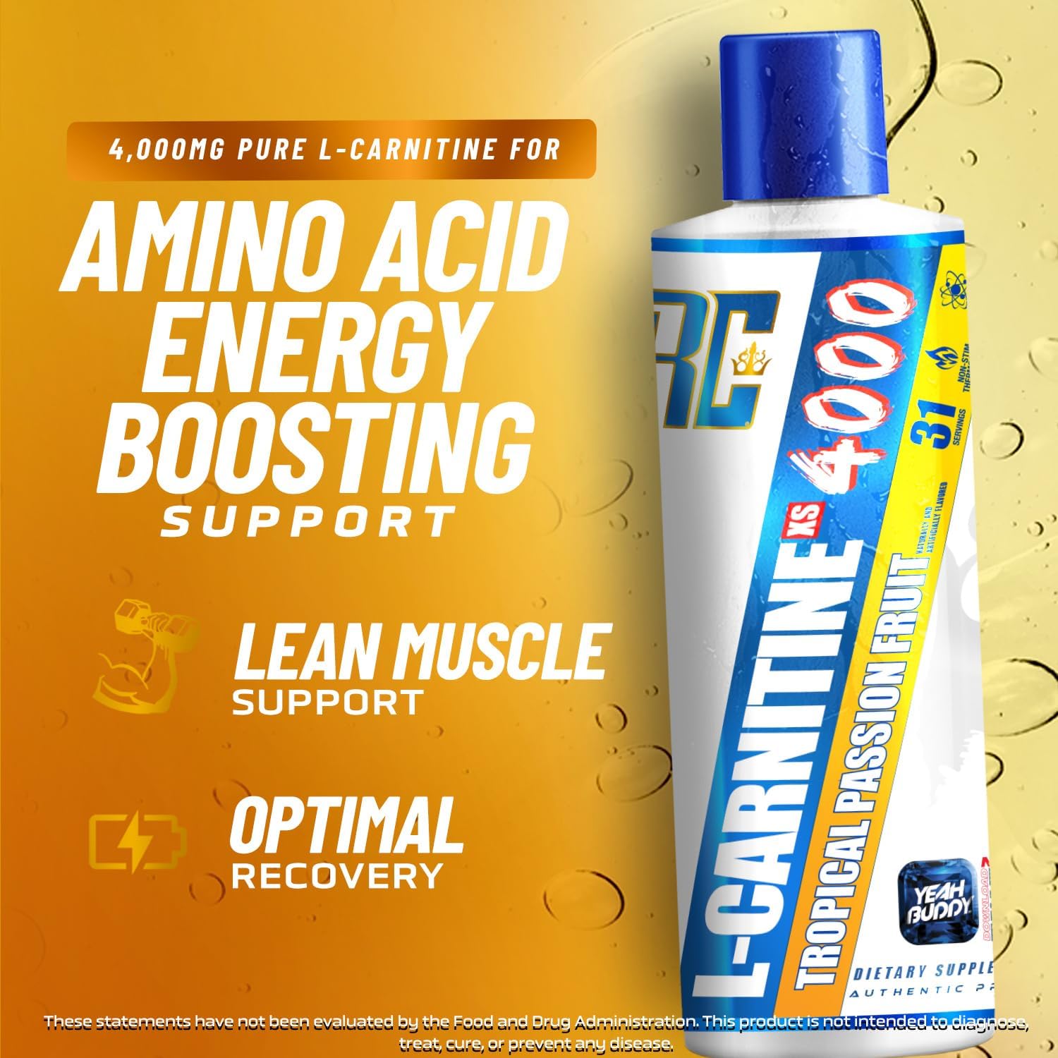 Ronnie Coleman Signature Series L Carnitine XS 4000 Liquid, Stimulant Free, Sugar Free, Zero Carbs, Lean Muscle Strength Support for Men & Women, 16 Oz (16 oz, Tropical Passion Fruit (4000))