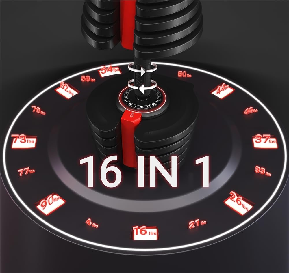 - 12 Weights Switch in Seconds: With just one hand and in one second, effortlessly switch between 12 weight options ranging from 7 lb to 52.5 lb for each adjustable dumbbell by simply twisting the selectorized anti-slip handle. The clear dials of this adjustable dumbbell set make adjustments even more straightforward, ensuring a smooth and convenient experience