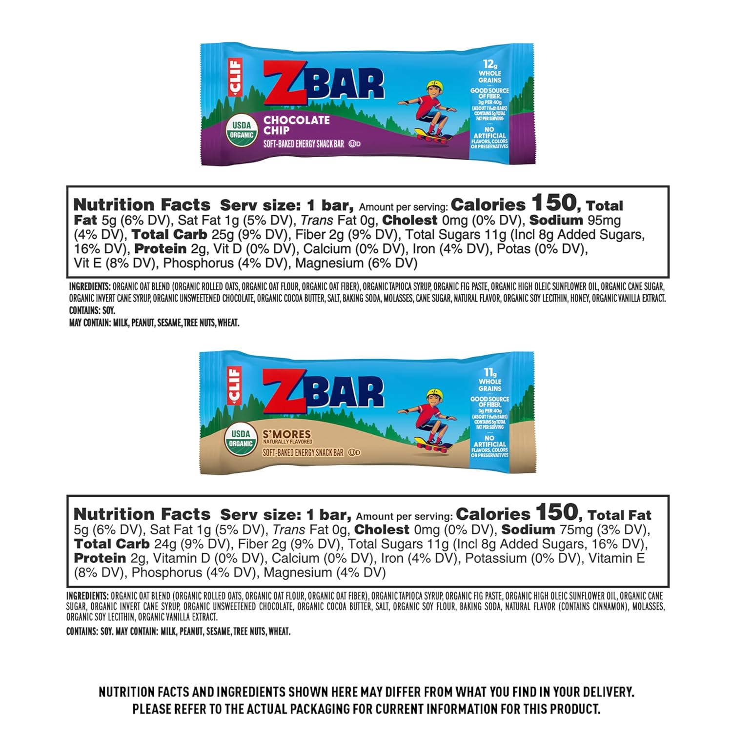 - DELICIOUS TASTE: Includes one 18-count variety pack of Zbar snack bars in two chewy and yummy flavors β Chocolate Chip and S'mores (packaging may vary)