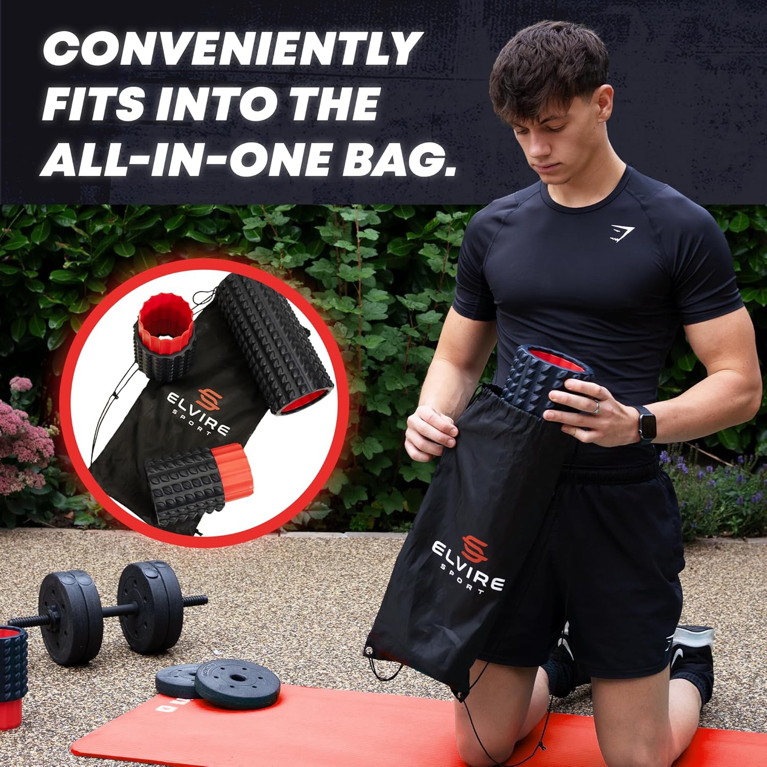 - Easy Storage: Don't let your long foam roller be an obstacle in the household, simply pull both sides to halve it in size then store it away using the large foam roller bag that's included.