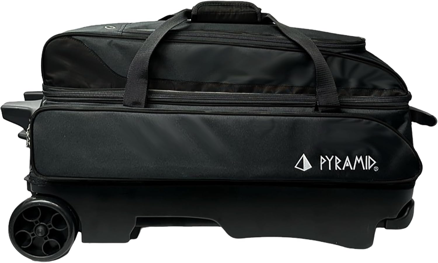 Pyramid Prime Triple Roller 3-Ball Bowling Bag with Extra Large Shoe Compartment (Fits Two Pairs of US Mens Size 15), Retractable Locking Handle (Extends to 41.5"), 1 Large Accessory Pocket, 5" Wheels